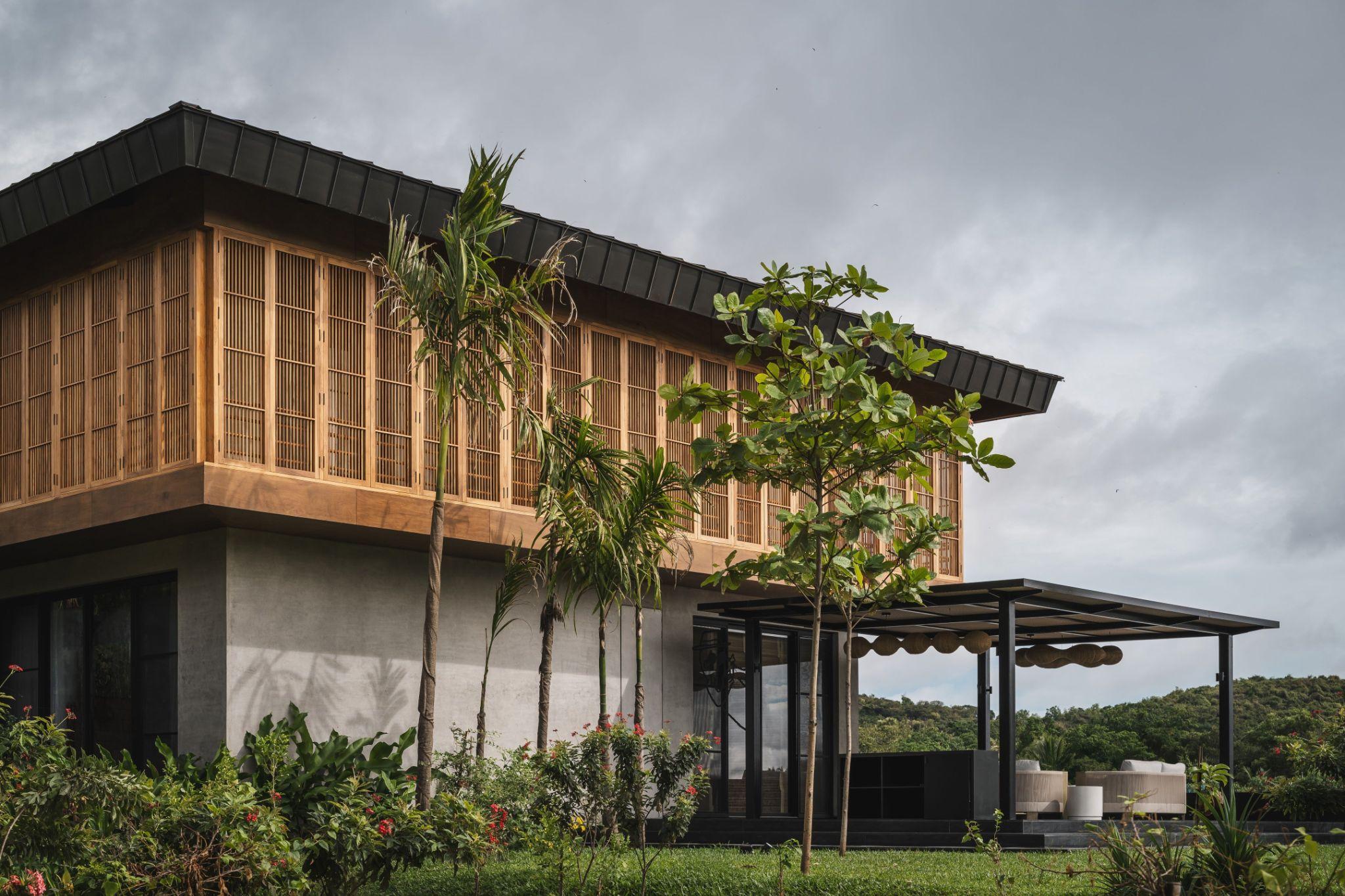 • Hệ lam gỗ tếch xoay mở giúp điều tiết ánh sáng và gió tự nhiên.