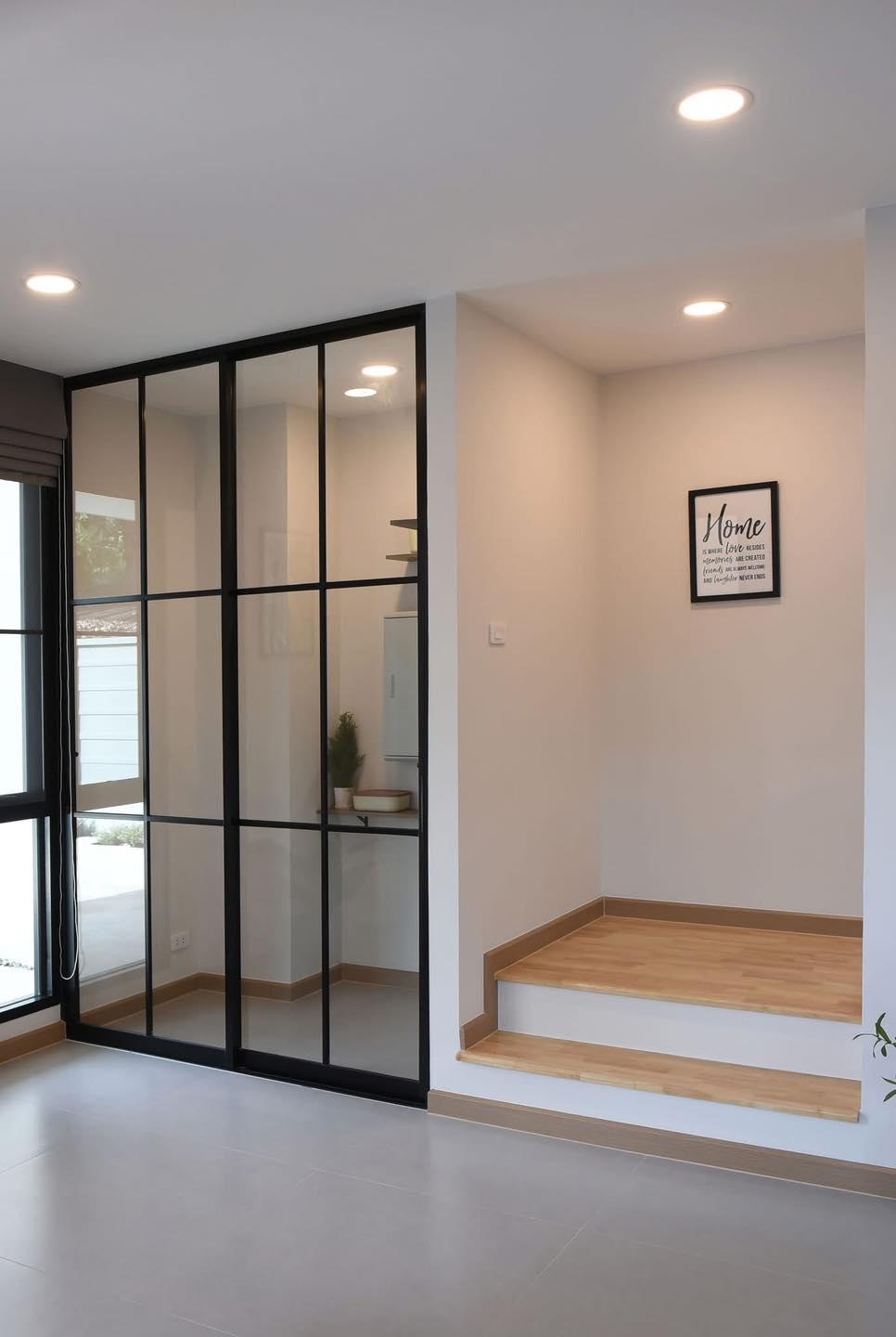 • Cửa kính khung đen chia ô:tạo điểm nhấn hiện đại, giữ ánh sáng và tầm nhìn thông suốt giữa các không gian.