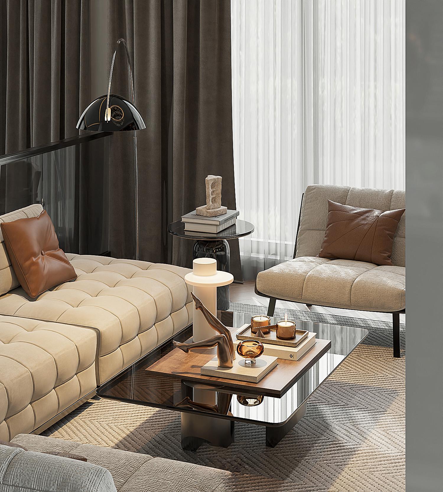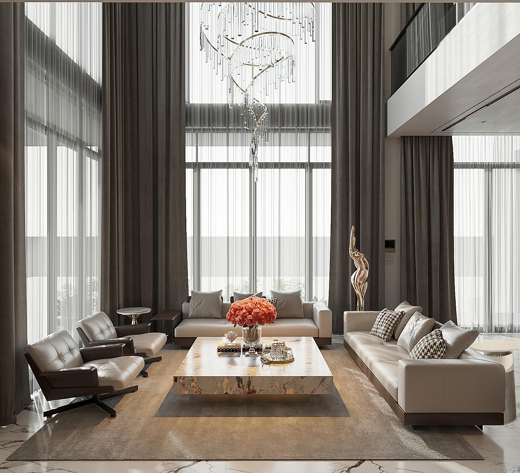Phòng khách – Trần cao, đá vân lớn, đậm chất "resort tại gia"