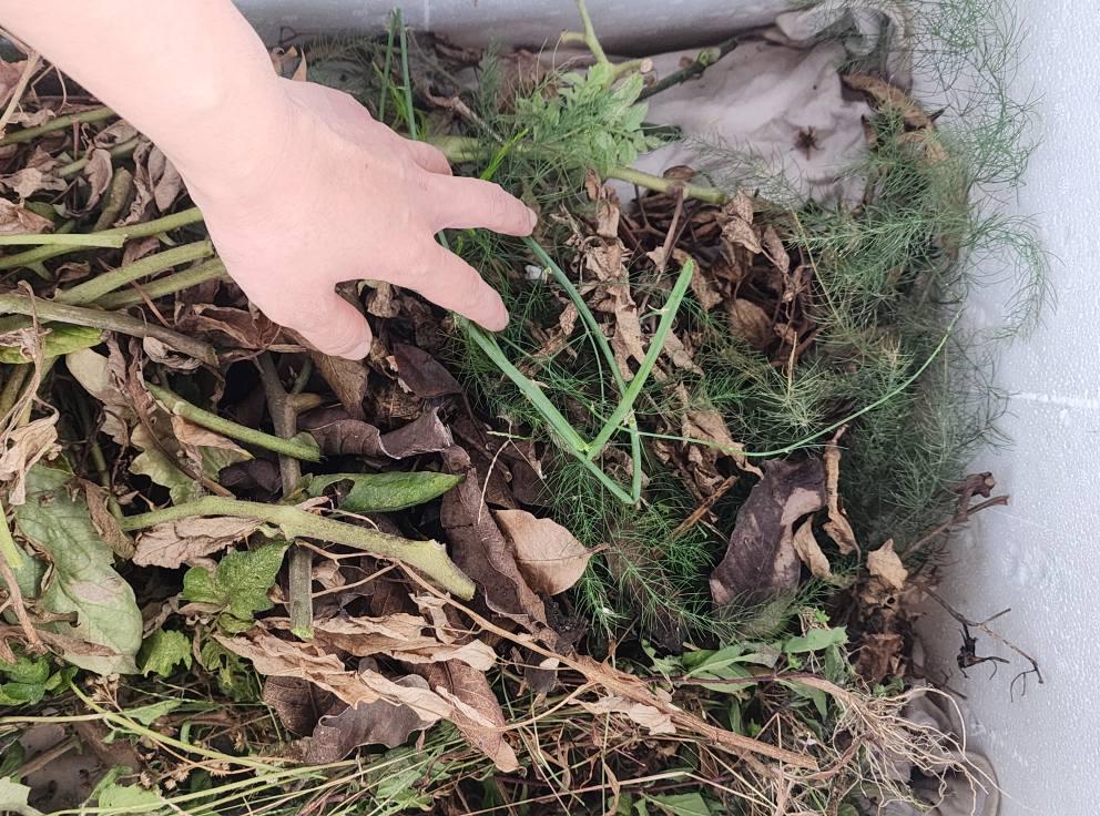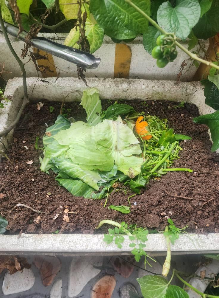 Ngoài ra, mình luôn duy trì 1 thùng xốp chứa rác rau củ hằng ngày, vừa giảm rác, vừa tạo lớp phân tươi cực tốt. Sau 1–2 tuần, mình trộn đất trong thùng này với đất cũ – tạo thành “một vòng đời mới” cho cây.