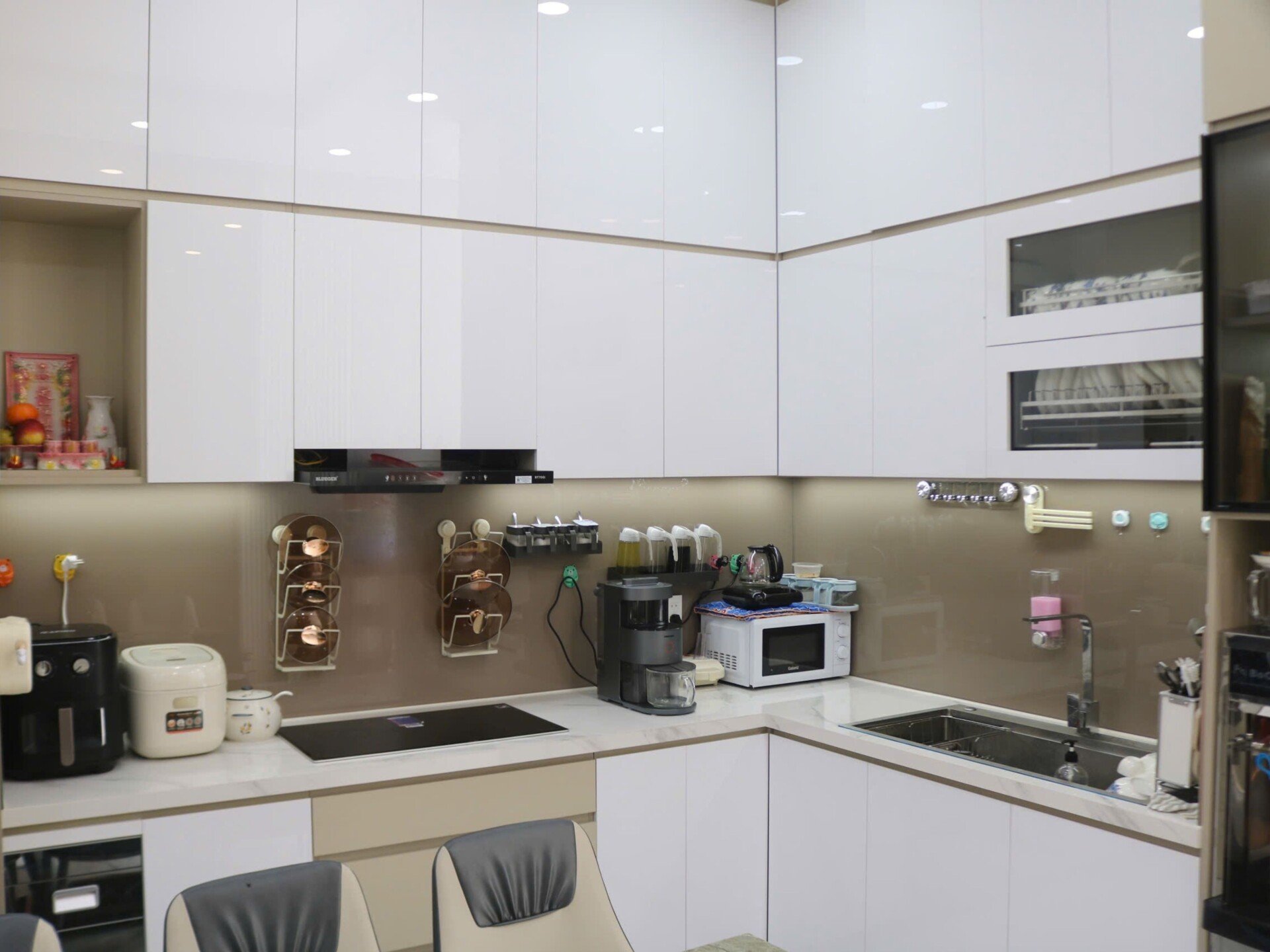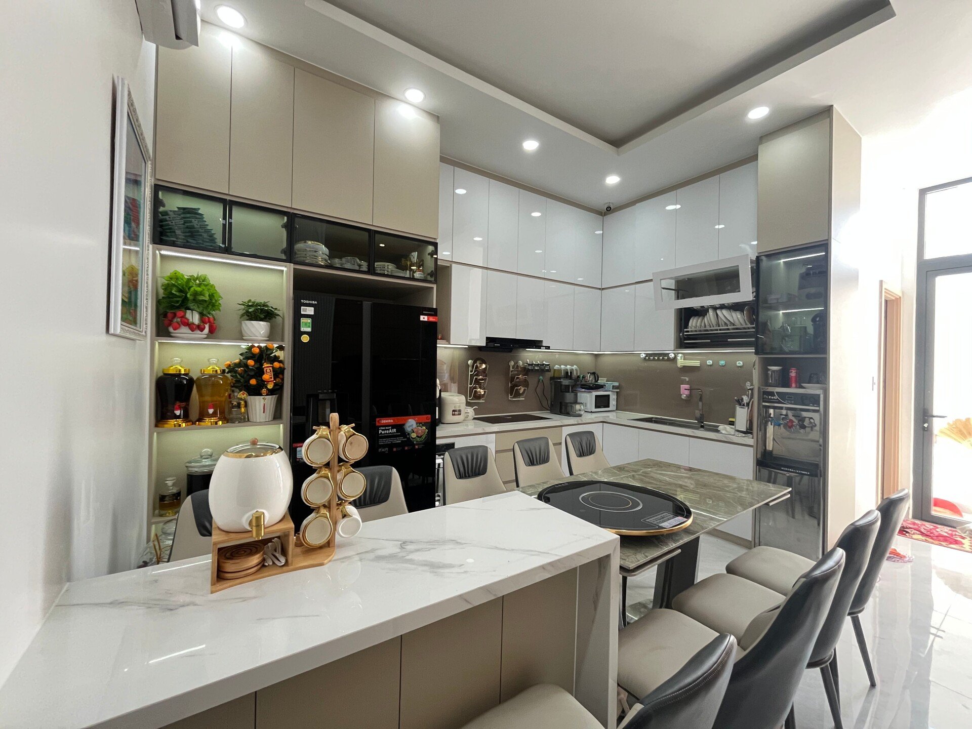 Không gian bếp đầy đủ tiện nghi hiện đại, giúp gia chủ tối ưu thời gian nấu nướng