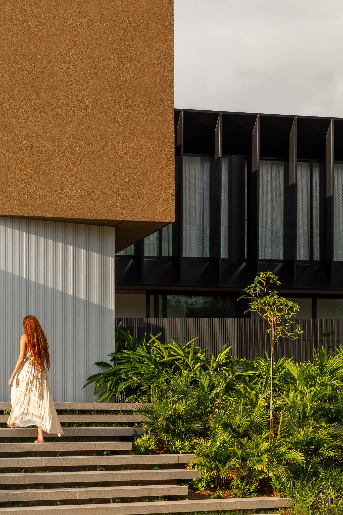 Việc sử dụng đa dạng vật liệu và bảng màu được thể hiện ngay từ diện mạo bên ngoài Buritis House