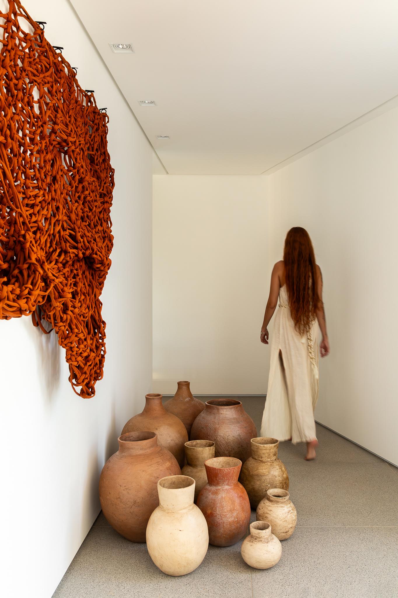 Bước vào trong nhà, rất nhiều yếu tố bản địa được sử dụng để trang trí cho không gian