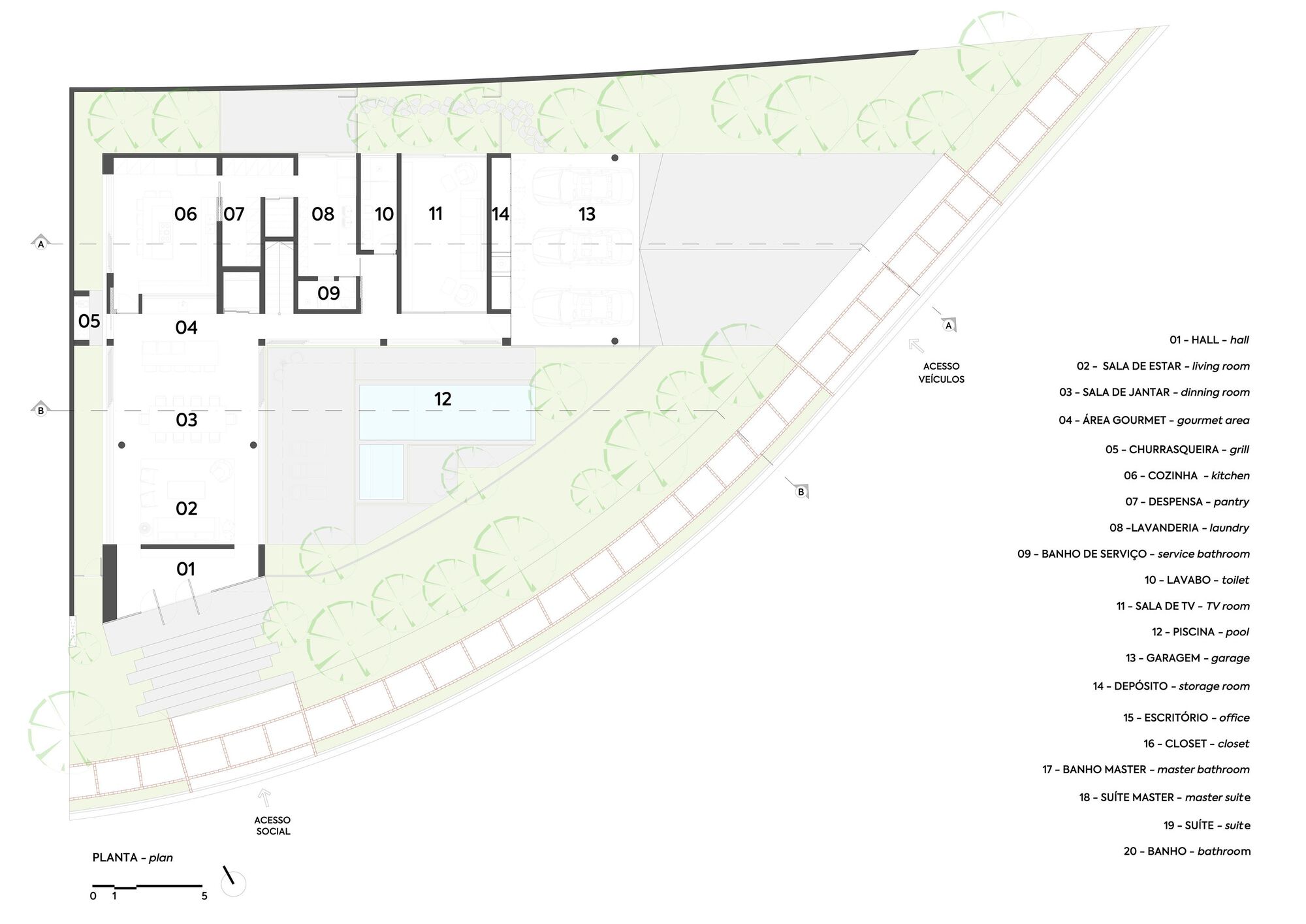Tầng trệt của Buritis House có thiết kế mở thoáng