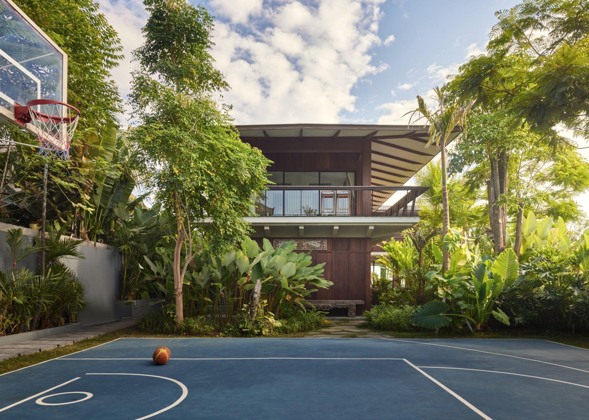 Khu thể thao ngoài trời được đặt cạnh khối nhà chính, bao quanh bởi cây cối và thảm cỏ xanh. Không gian này mở rộng khái niệm “nghỉ dưỡng” thành lối sống năng động và cân bằng