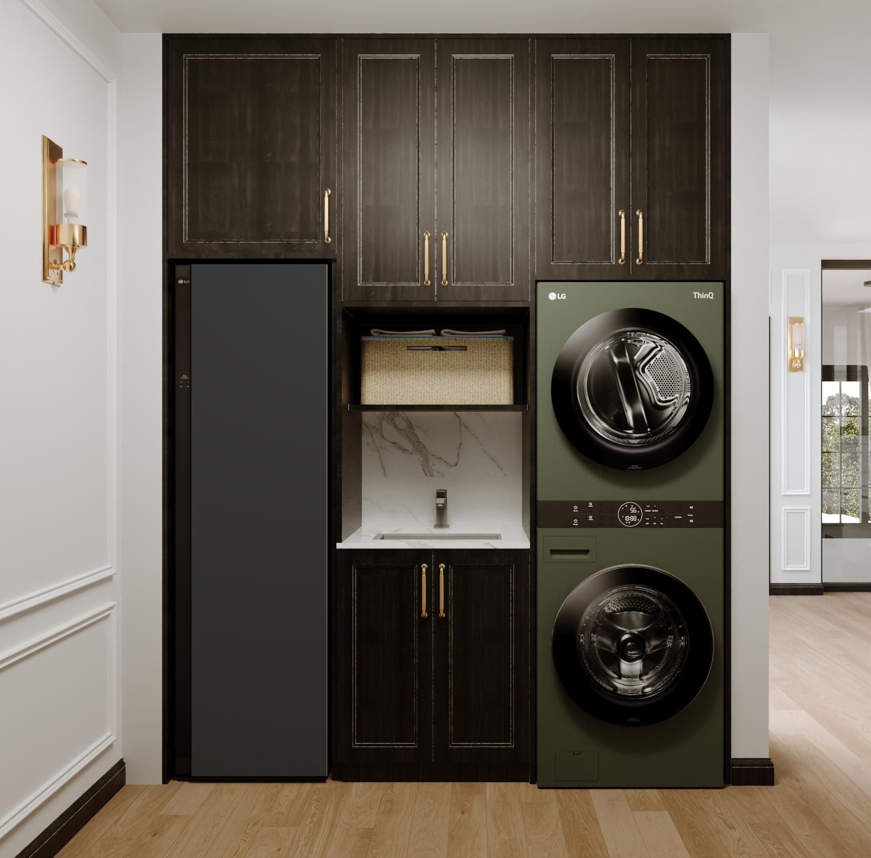 Phòng giặt - phơi được bố trí riêng biệt, gọn gàng nhưng đầy đủ tính năng. Bộ đôi tháp giặt sấy LG WashTower™ và tủ chăm sóc quần áo LG Styler giúp chăm sóc trang phục kỹ lưỡng, đúng tinh thần sống chỉn chu mà chủ nhân theo đuổi.