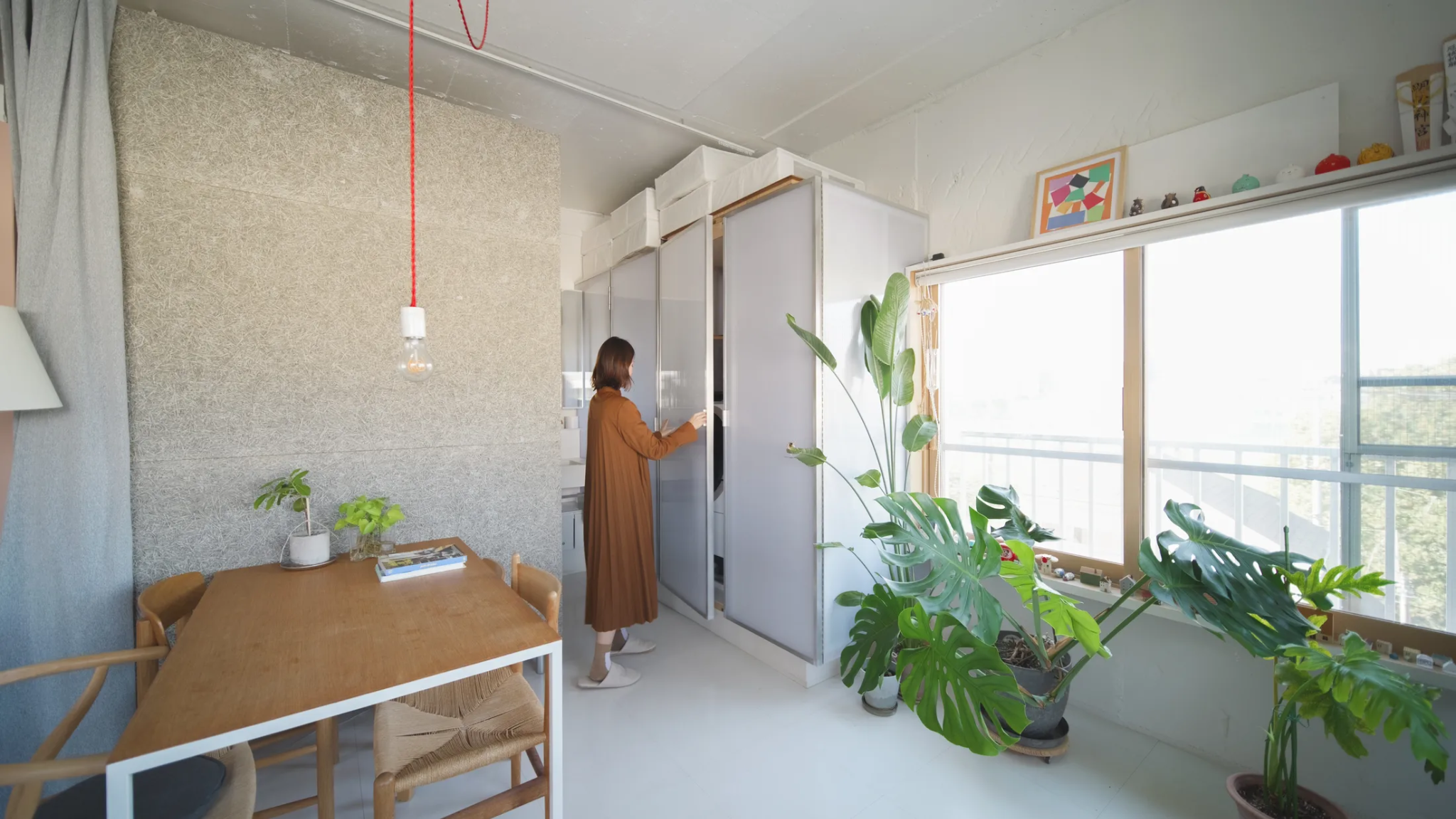 Giữa lòng Tokyo đông đúc, nơi mỗi mét vuông đều trở nên quý giá, căn hộ 35m2 mang tên Somosomo House là tổ ấm của cặp vợ chồng kiến trúc sư Mayo Takato và Takeshi Odaki, những người sáng lập studio TOASt. Đối mặt với hiện trạng ban đầu bị chia cắt bởi bố cục cũ dạng phòng tatami và hành lang hẹp, họ đã lột bỏ hoàn toàn các vách ngăn truyền thống. Thay vì xây tường, hai kiến trúc sư đã áp dụng triết lý khoảng lùi vốn rất nổi tiếng trong kiến trúc Nhật Bản, sử dụng các khối hộp chức năng có tính di động để kiến tạo không gian.