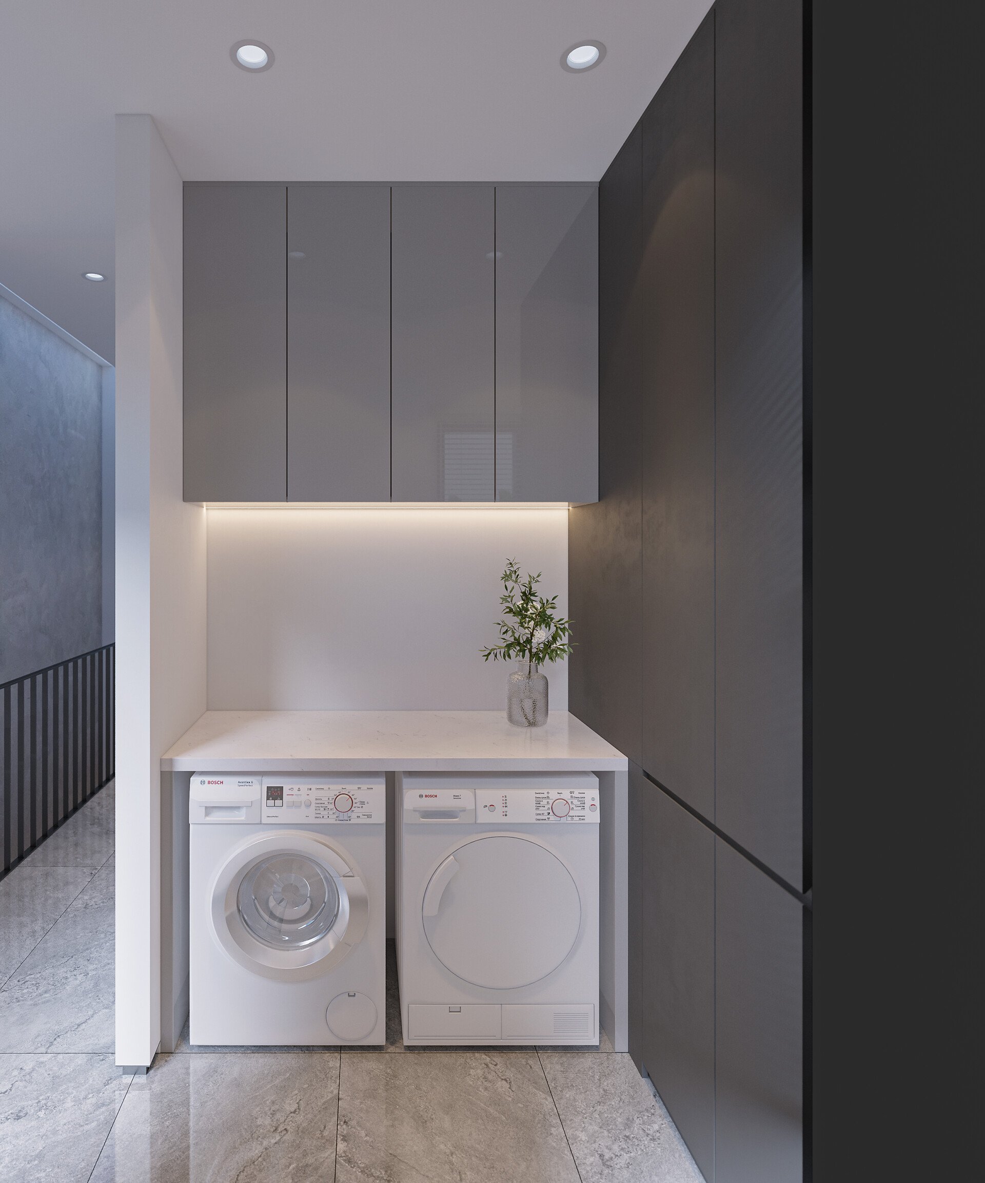 Tên gọi “Stack House” được lấy cảm hứng từ việc xếp lớp các khối kiến trúc, như cách một chuỗi lập trình “0101001” tạo nên hình thức. Mặt tiền nổi bật với các khối đặc xen kẽ rỗng, đường nét thẳng, tạo độ thoáng và lấy ánh sáng tự nhiên hiệu quả.