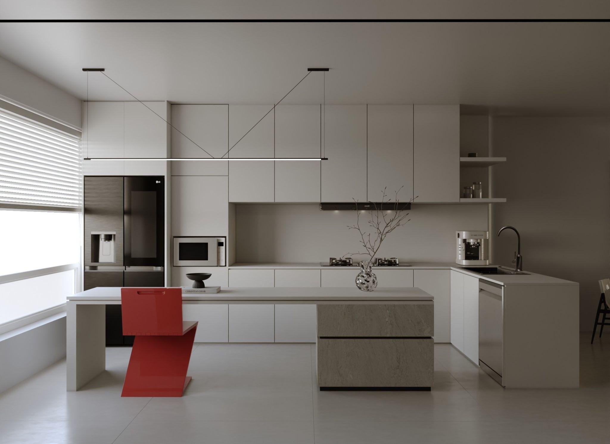 Ngay từ bước chân đầu tiên vào TN House, người ta có thể cảm nhận được tinh thần “less is more” được thực hiện chỉn chu từ hình khối đến màu sắc. Toàn bộ không gian sử dụng bảng màu đơn sắc trung tính như trắng ngà, xám nhạt, be kem… kết hợp cùng ánh sáng tự nhiên chan hòa, tạo nên hiệu ứng thị giác thanh thoát nhưng đầy cảm xúc.