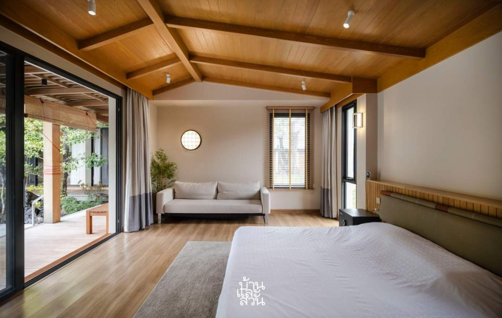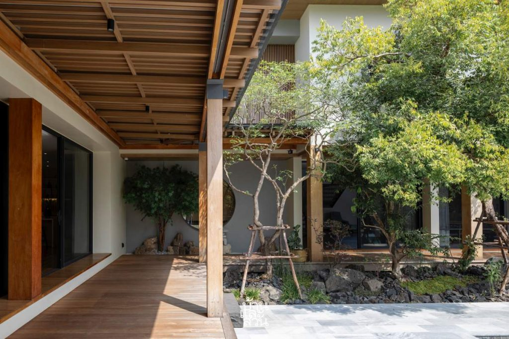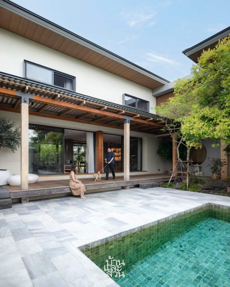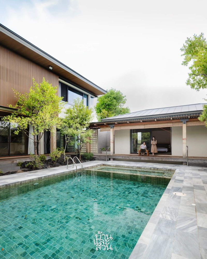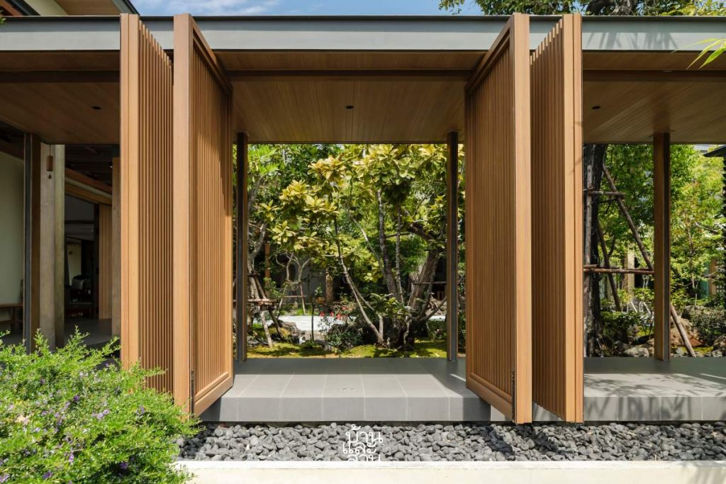 Ngôi nhà Hạc” nằm tại Thái Lan, lấy cảm hứng từ tinh thần thiền tĩnh và bền vững của kiến trúc Nhật. Ngôi nhà được thiết kế dành cho gia đình đa thế hệ, với khối nhà riêng cho người lớn tuổi, sân vườn kiểu Nhật và giải pháp kiến trúc thụ động để mang đến một nơi trú ẩn an yên, mộc mạc giữa thiên nhiên.