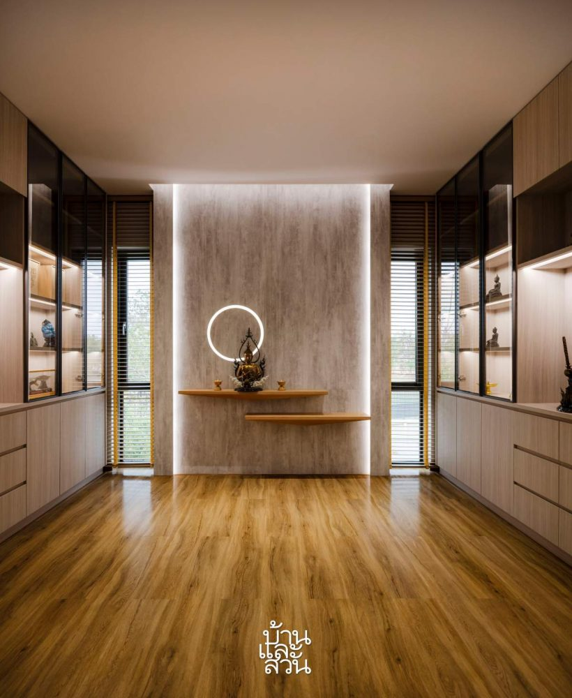 Phòng thờ Phật có thiết kế đẹp mắt, hiện đại và không gian trống khá nhiều để phòng trường hợp gia chủ thay đổi mục đích sử dụng trong tương lai