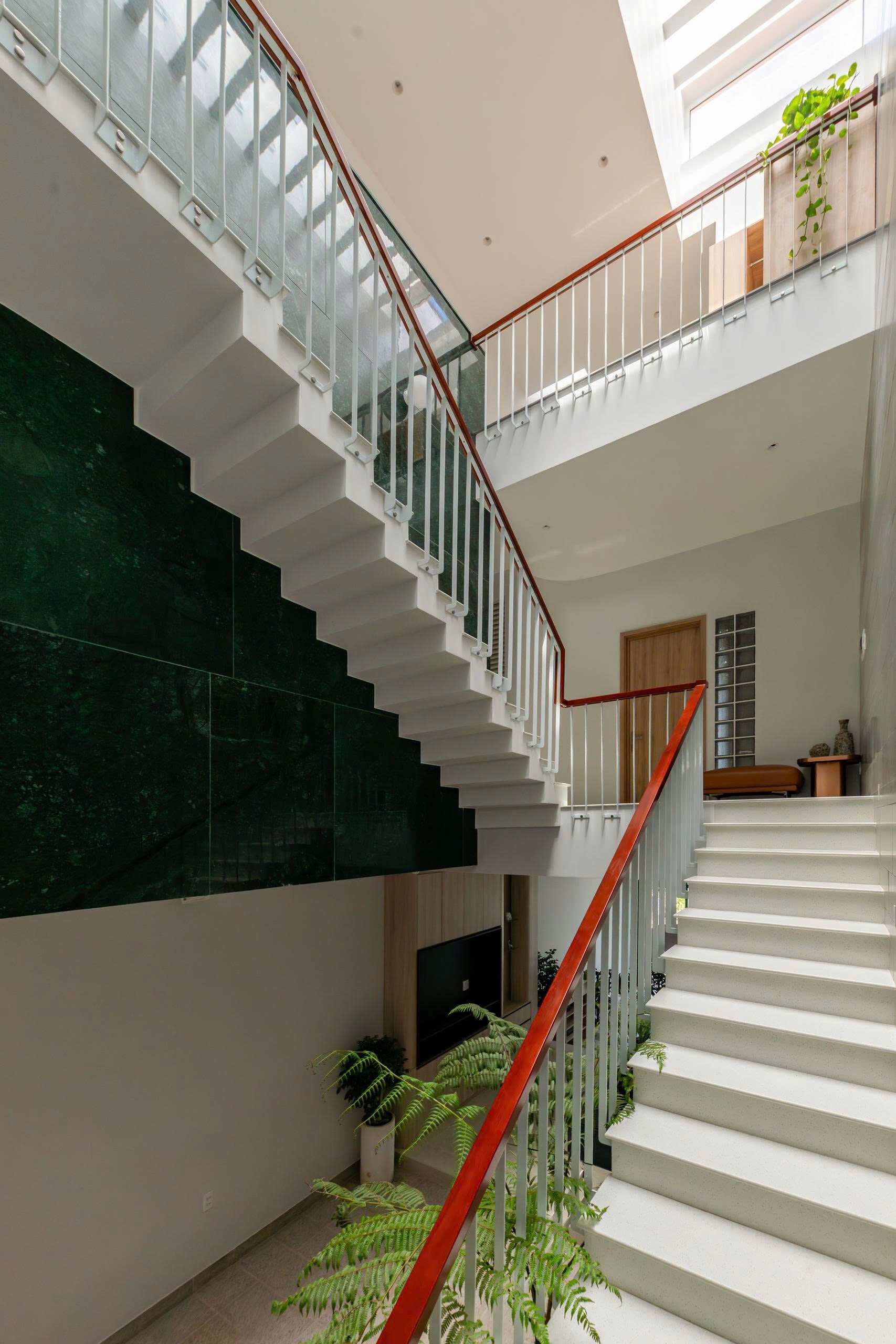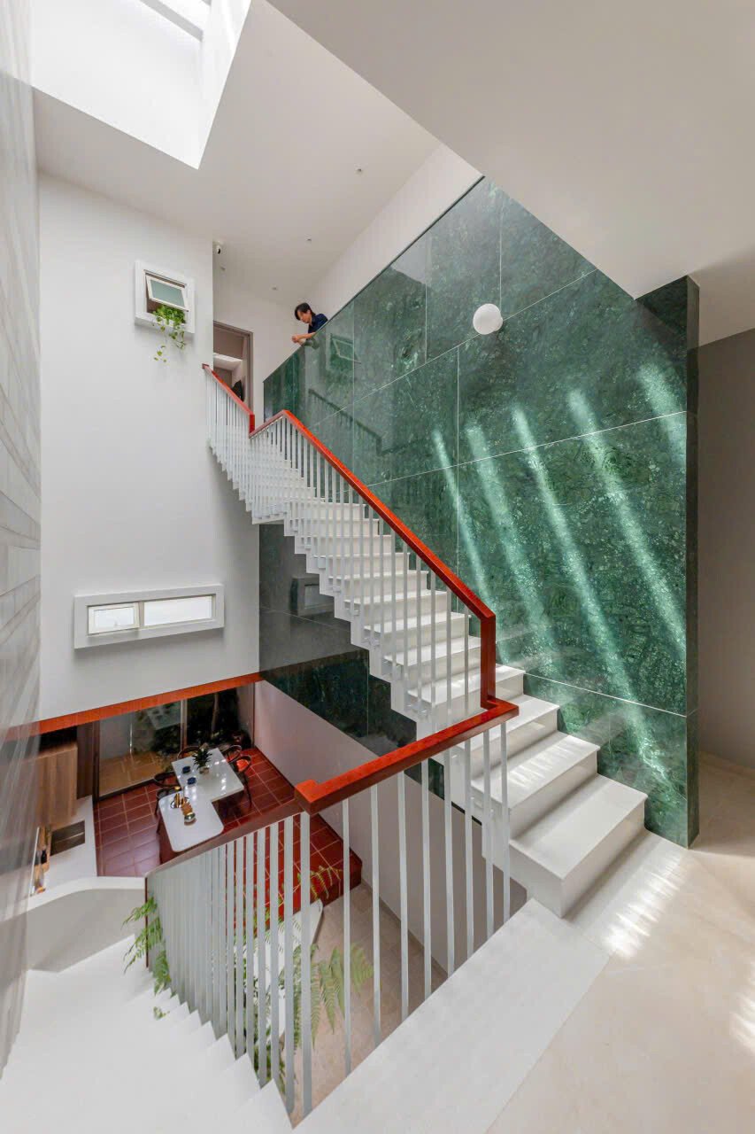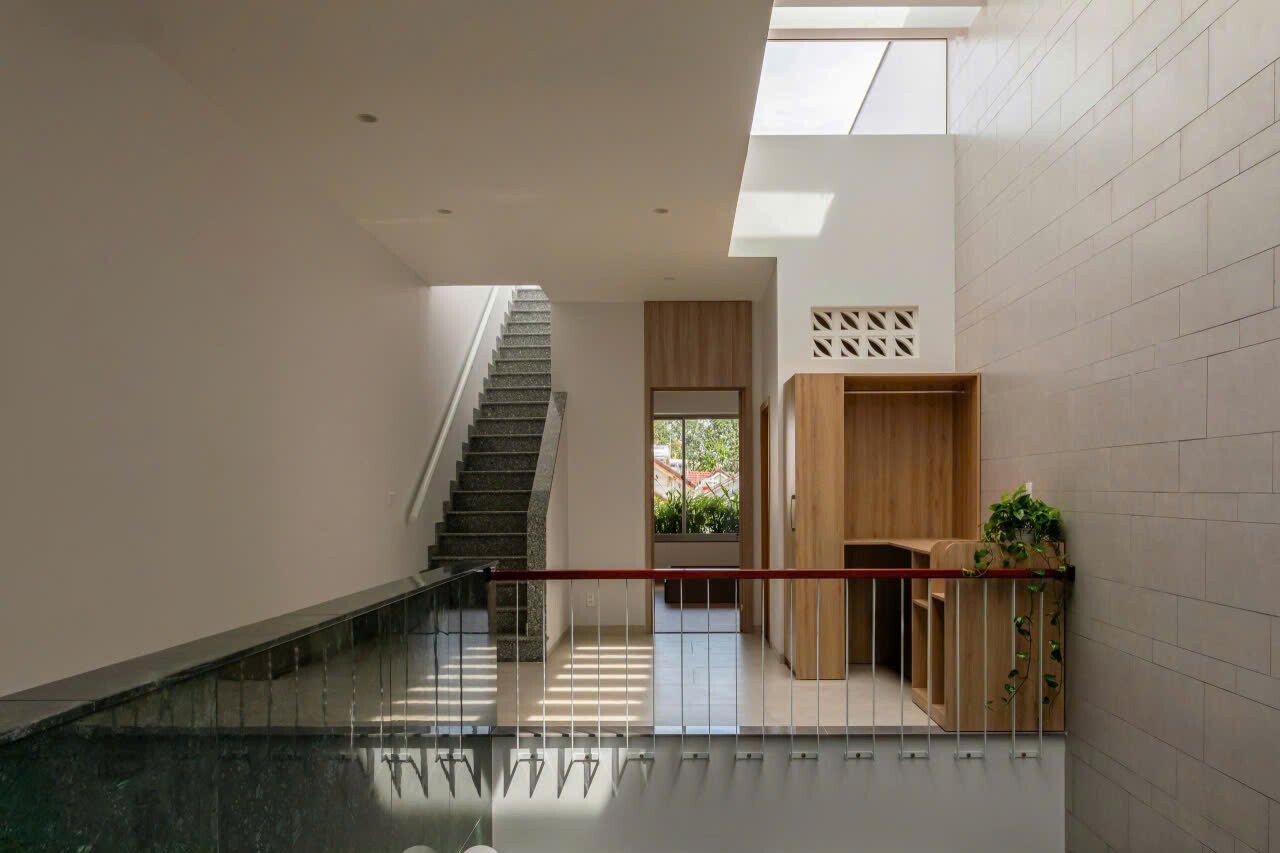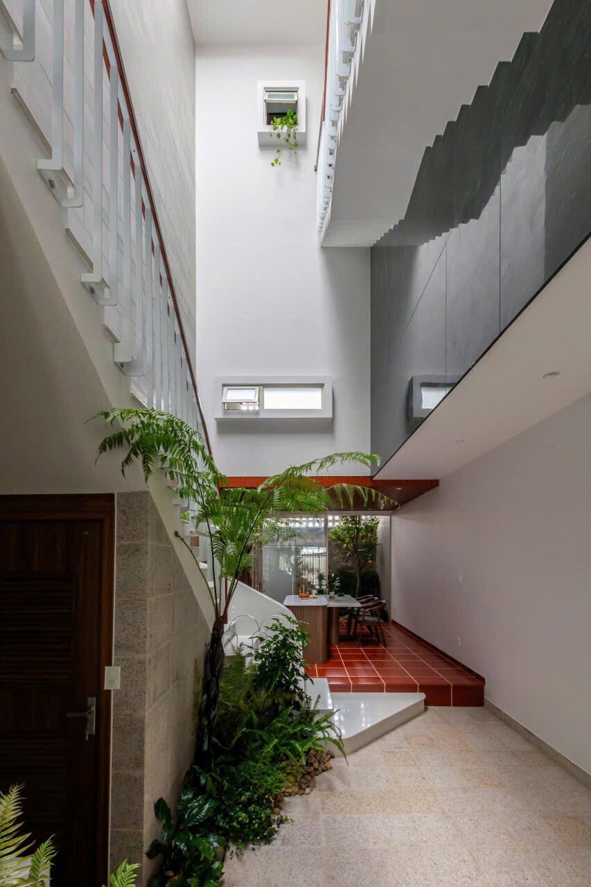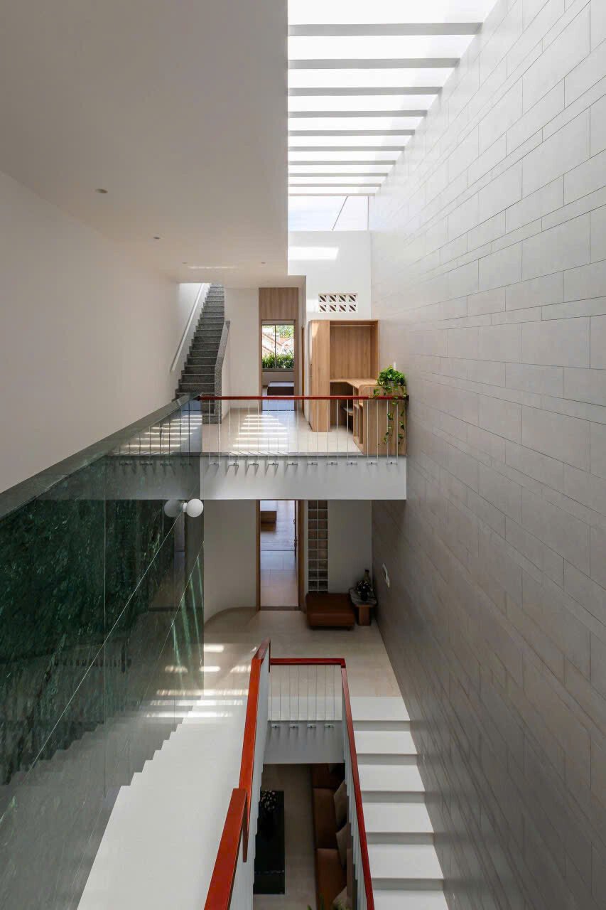 Khoảng không gian giếng trời giúp giao thông đứng trở nên sinh động và dễ chịu, khi di chuyển trên cầu thang như đi dạo chứ không nhàm chán.
