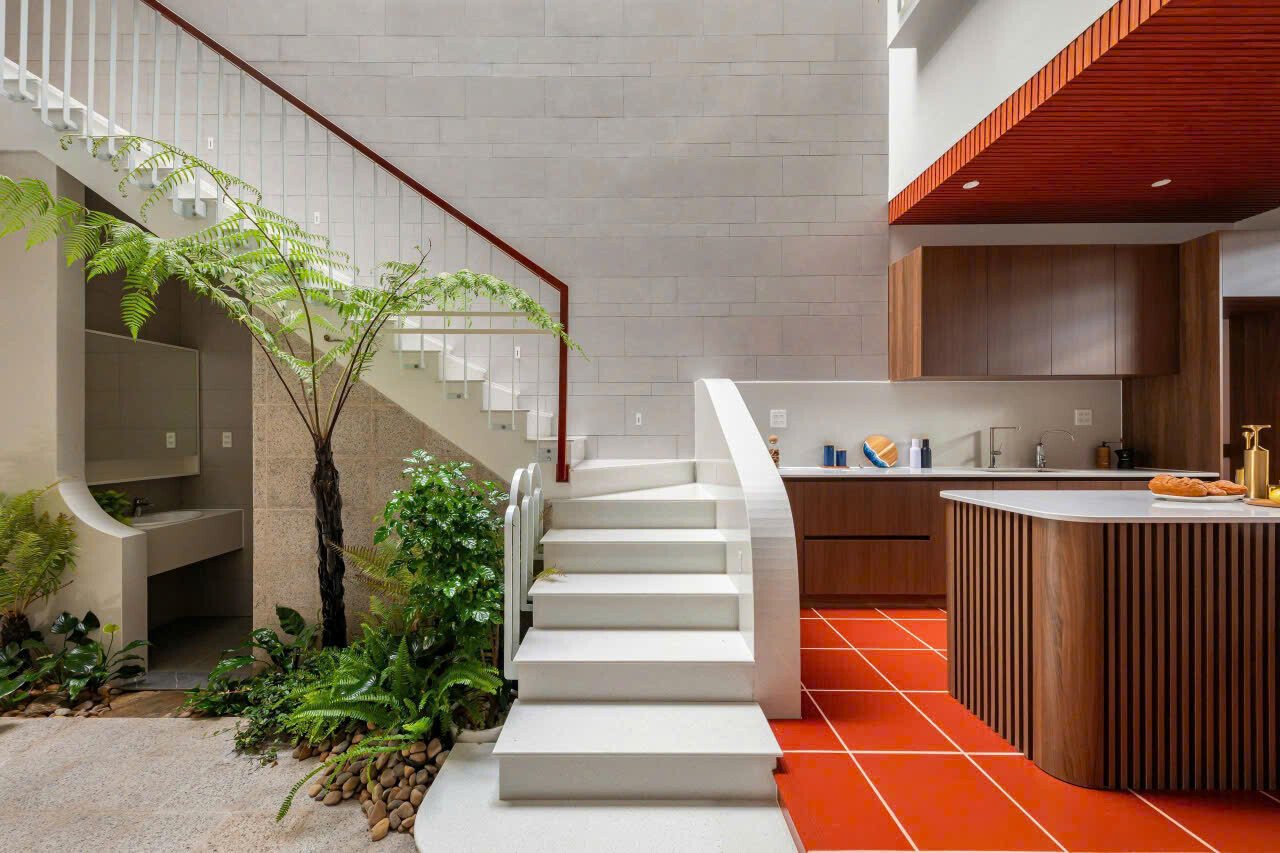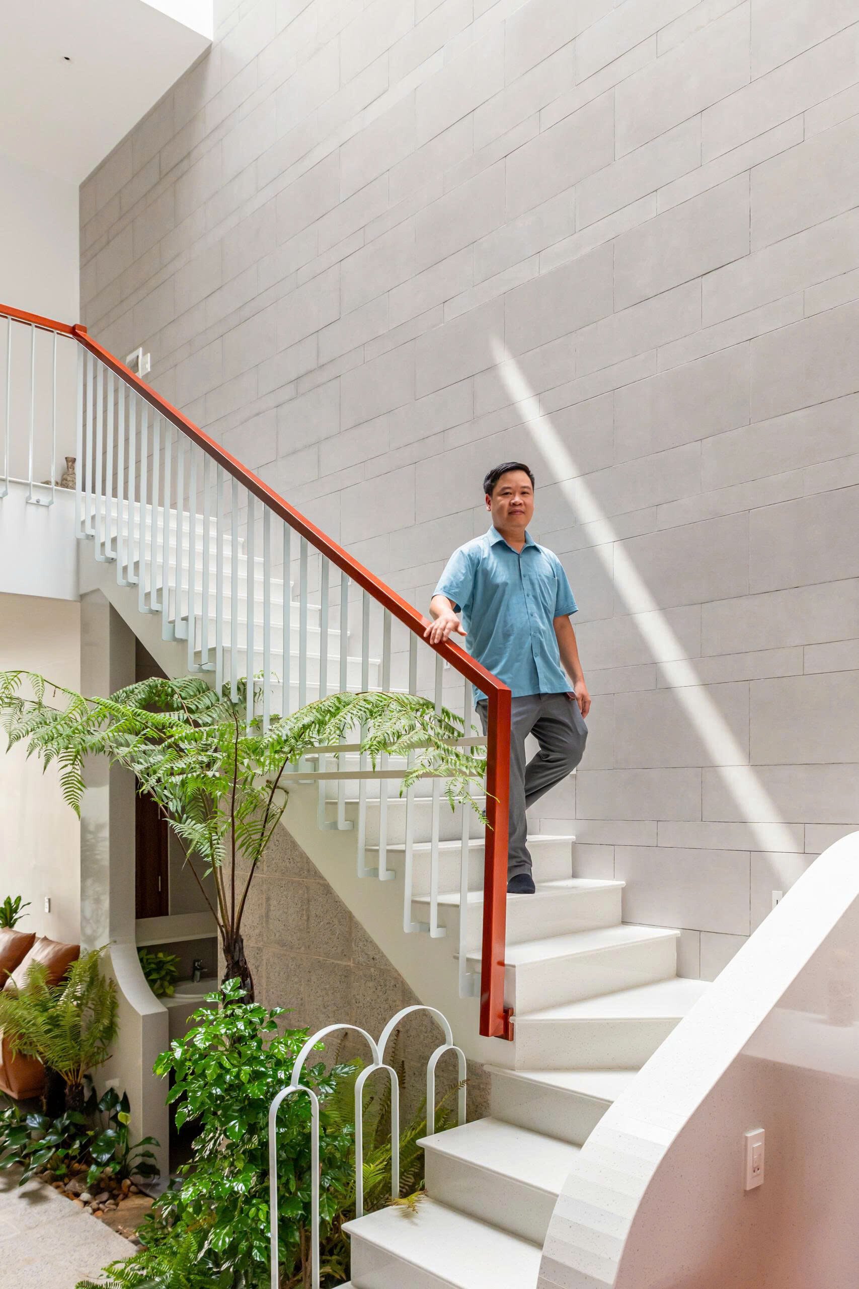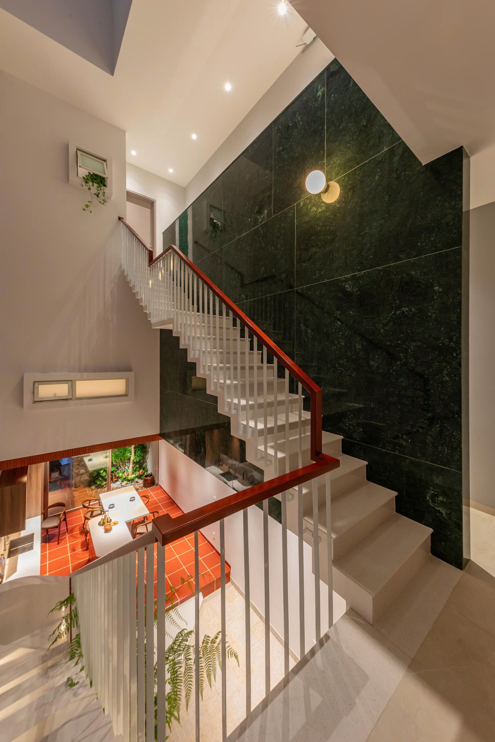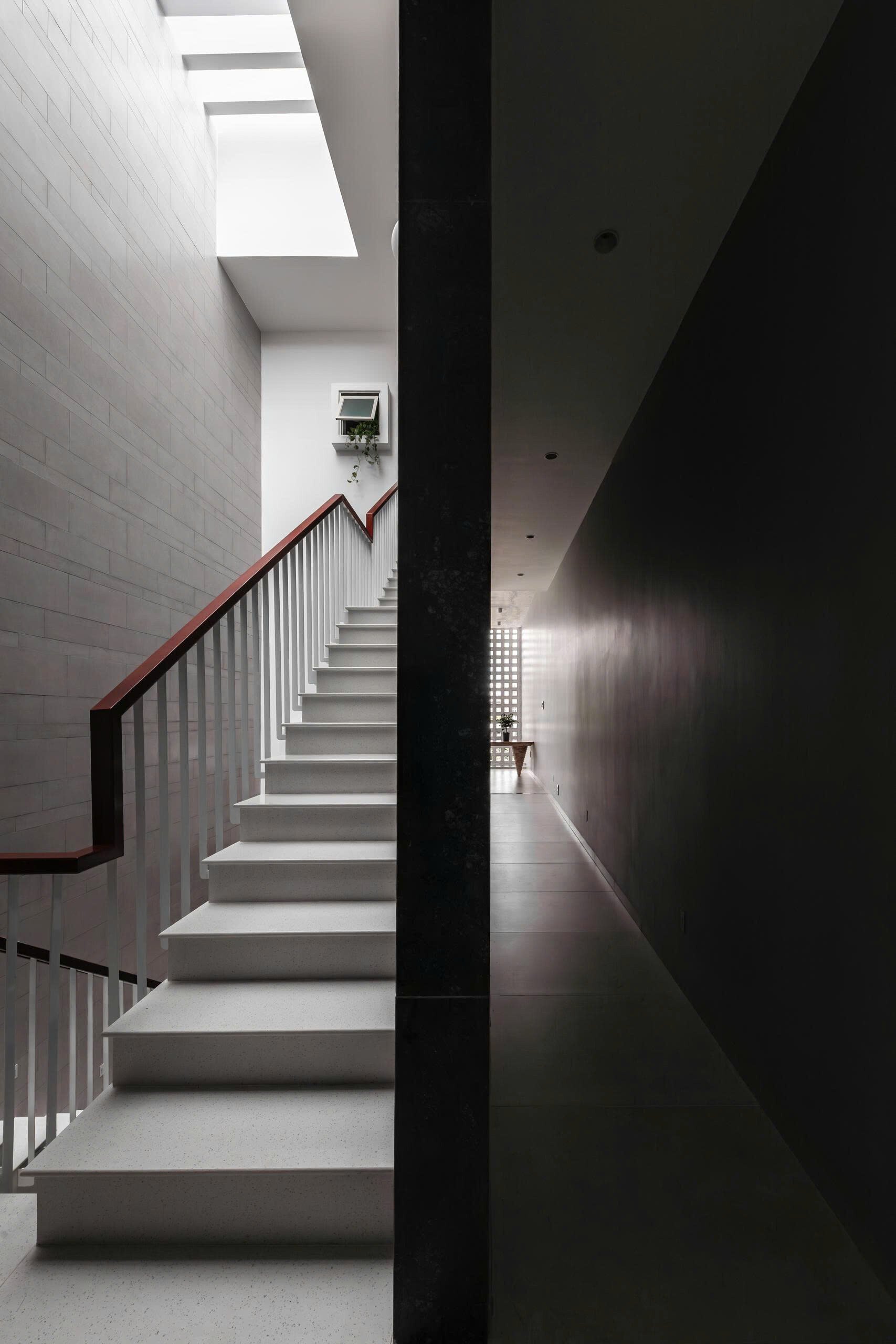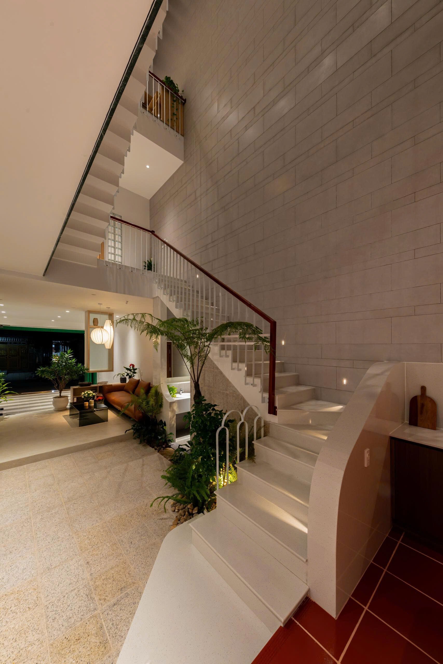 Khoảng không gian giếng trời giúp giao thông đứng trở nên sinh động và dễ chịu, khi di chuyển trên cầu thang như đi dạo chứ không nhàm chán.
