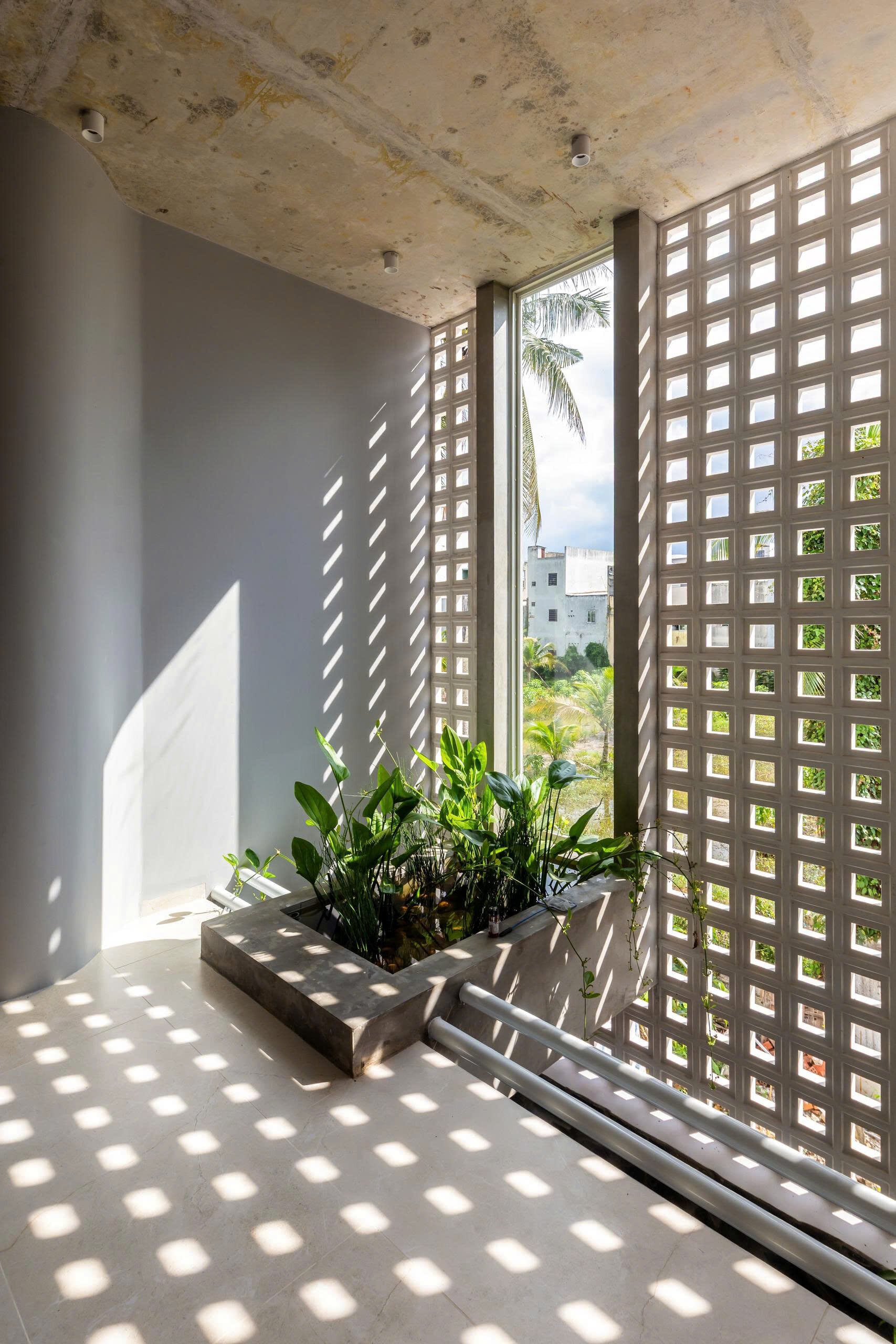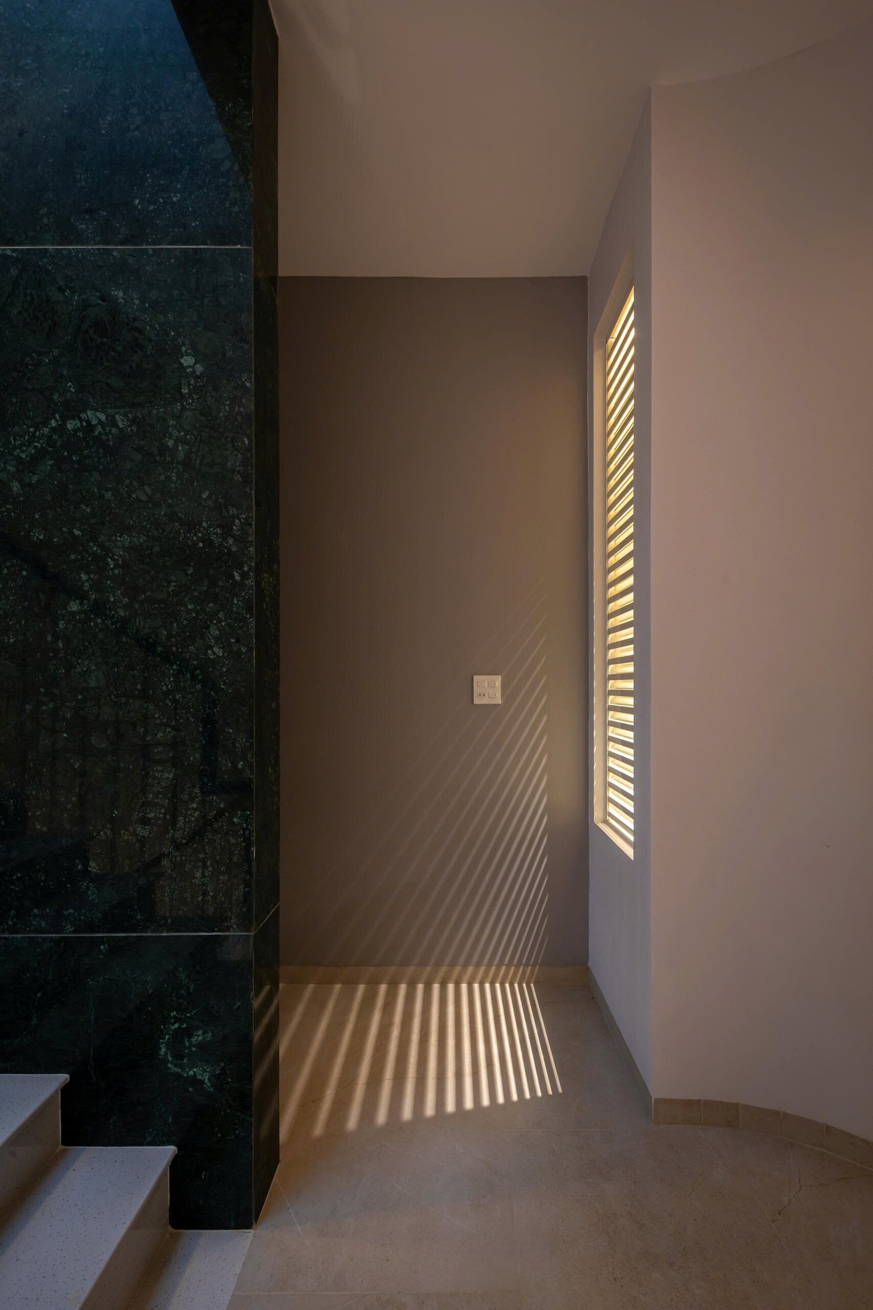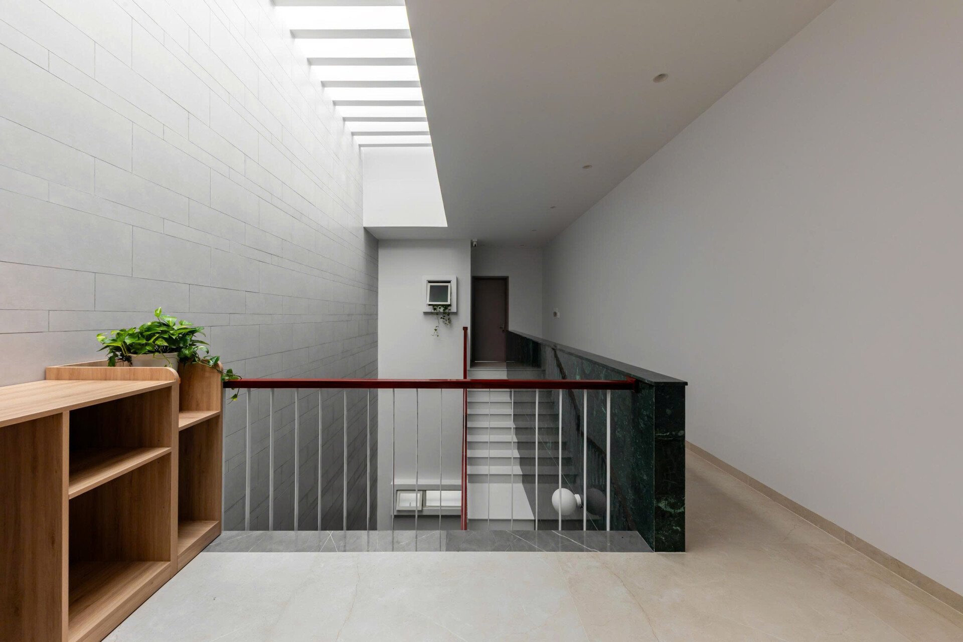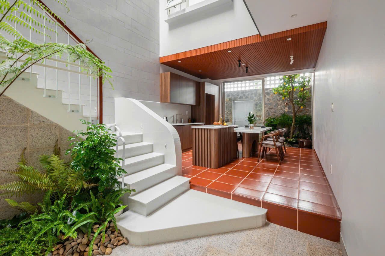 Khoảng không gian giếng trời giúp giao thông đứng trở nên sinh động và dễ chịu, khi di chuyển trên cầu thang như đi dạo chứ không nhàm chán.