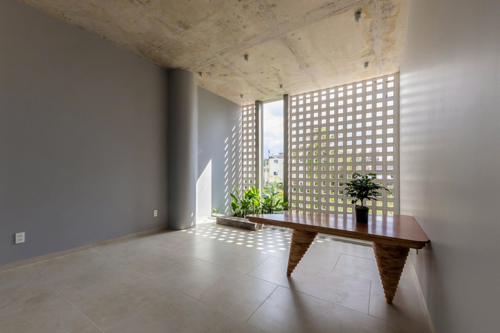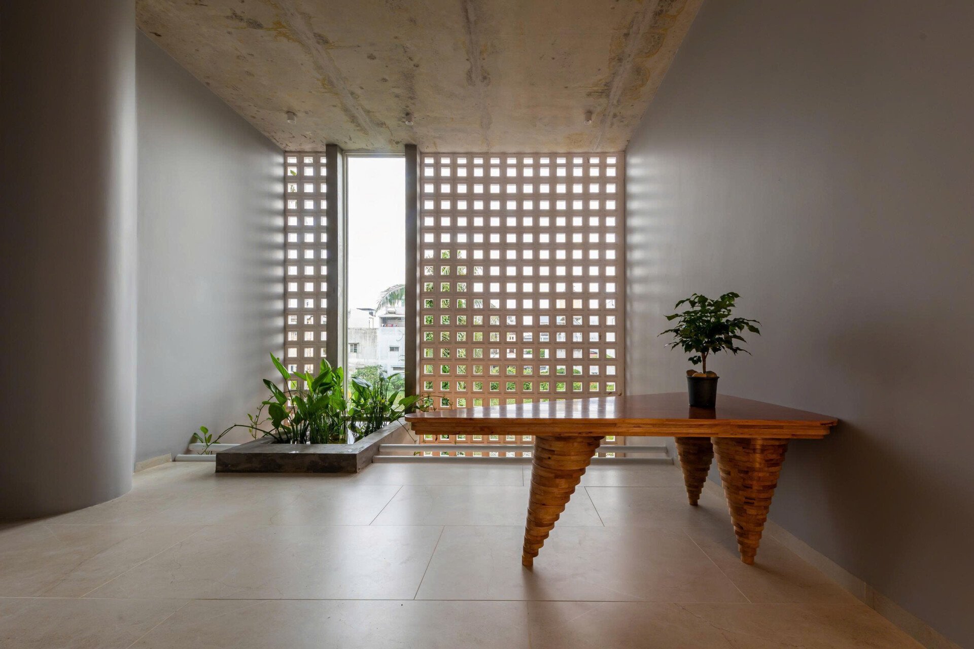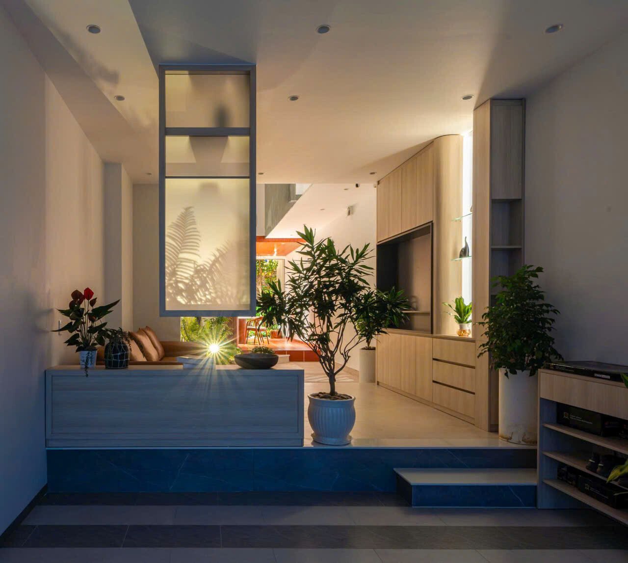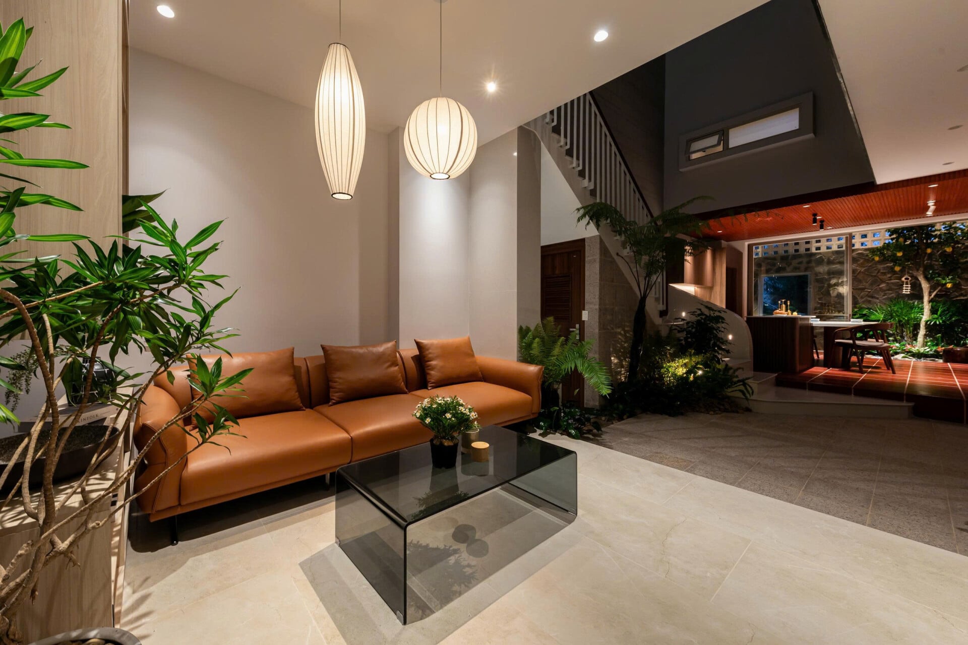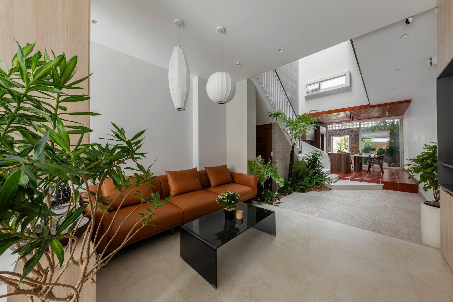 Khoảng không gian giếng trời giúp giao thông đứng trở nên sinh động và dễ chịu, khi di chuyển trên cầu thang như đi dạo chứ không nhàm chán.
