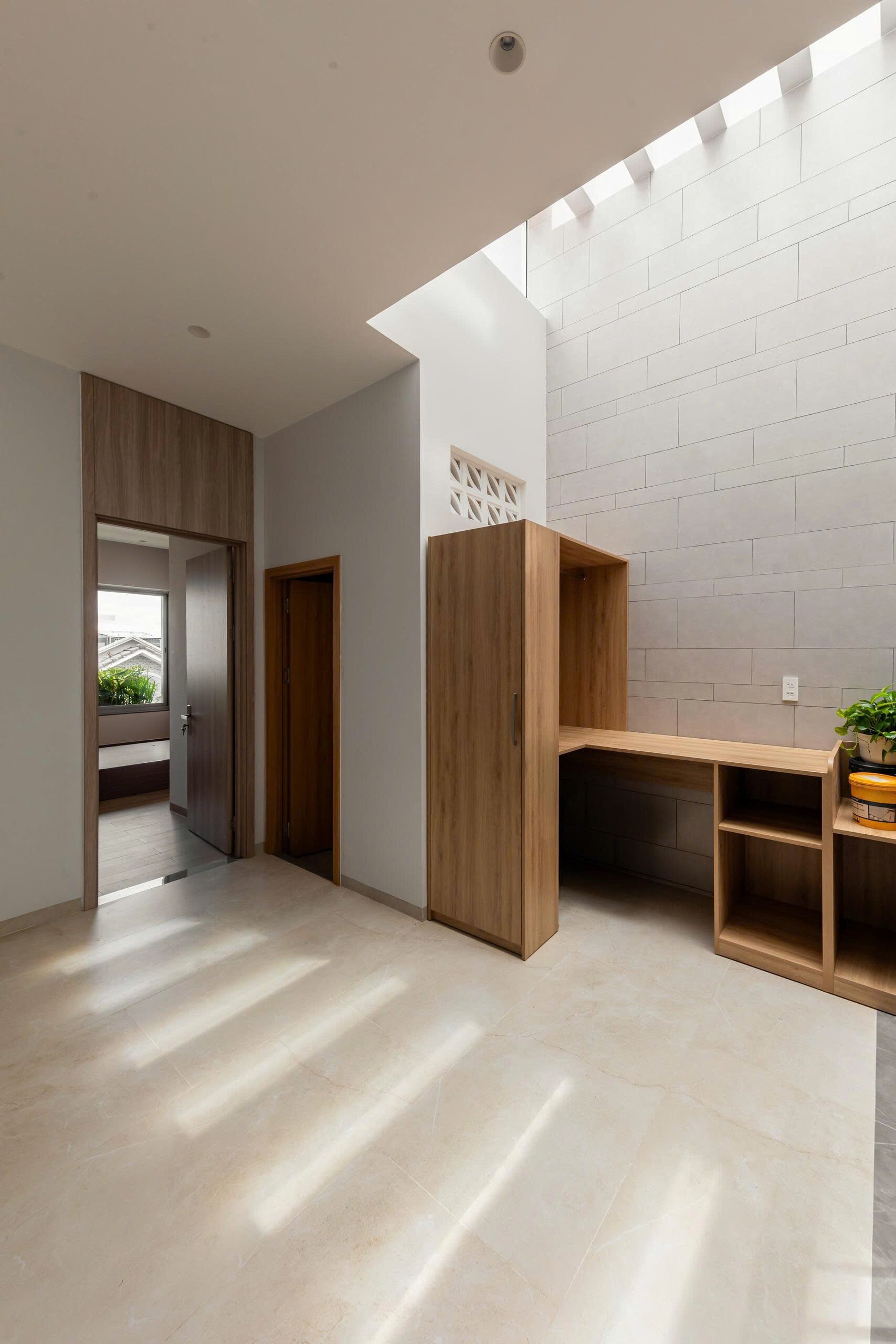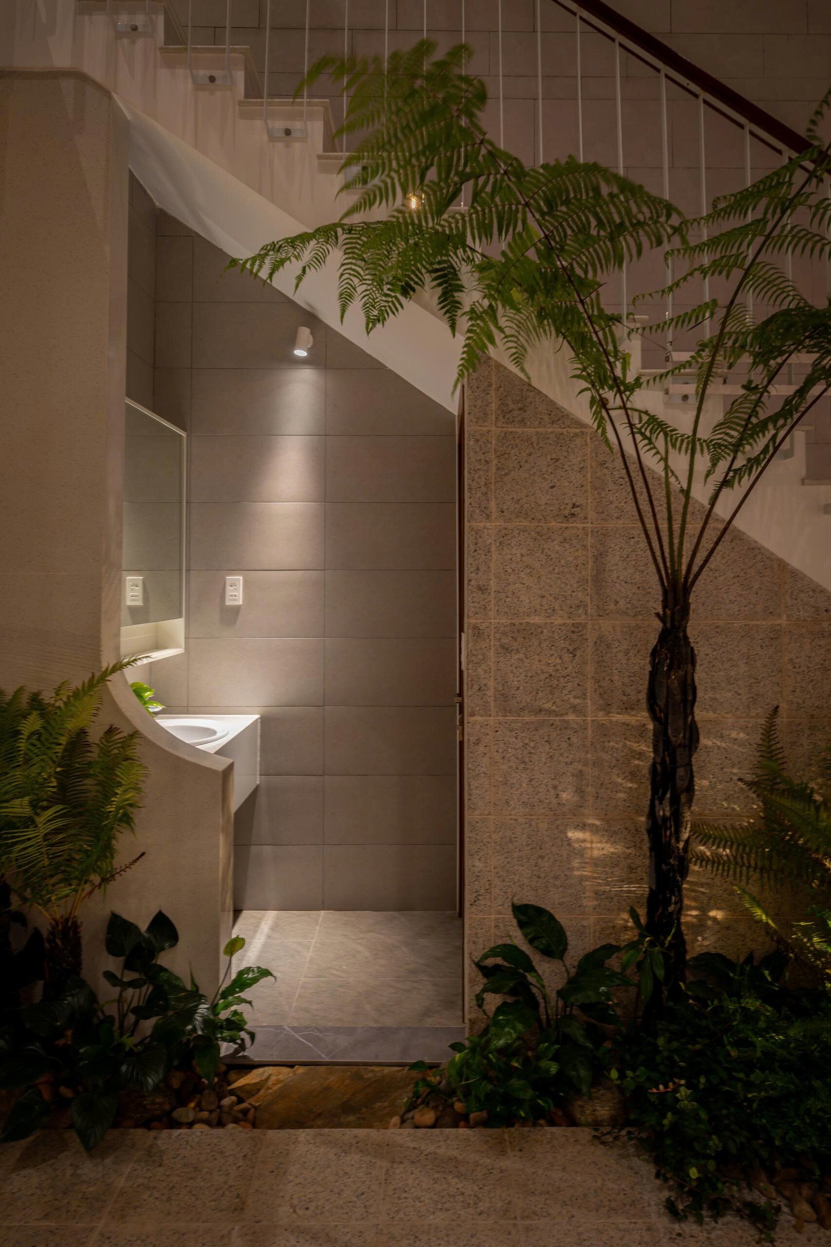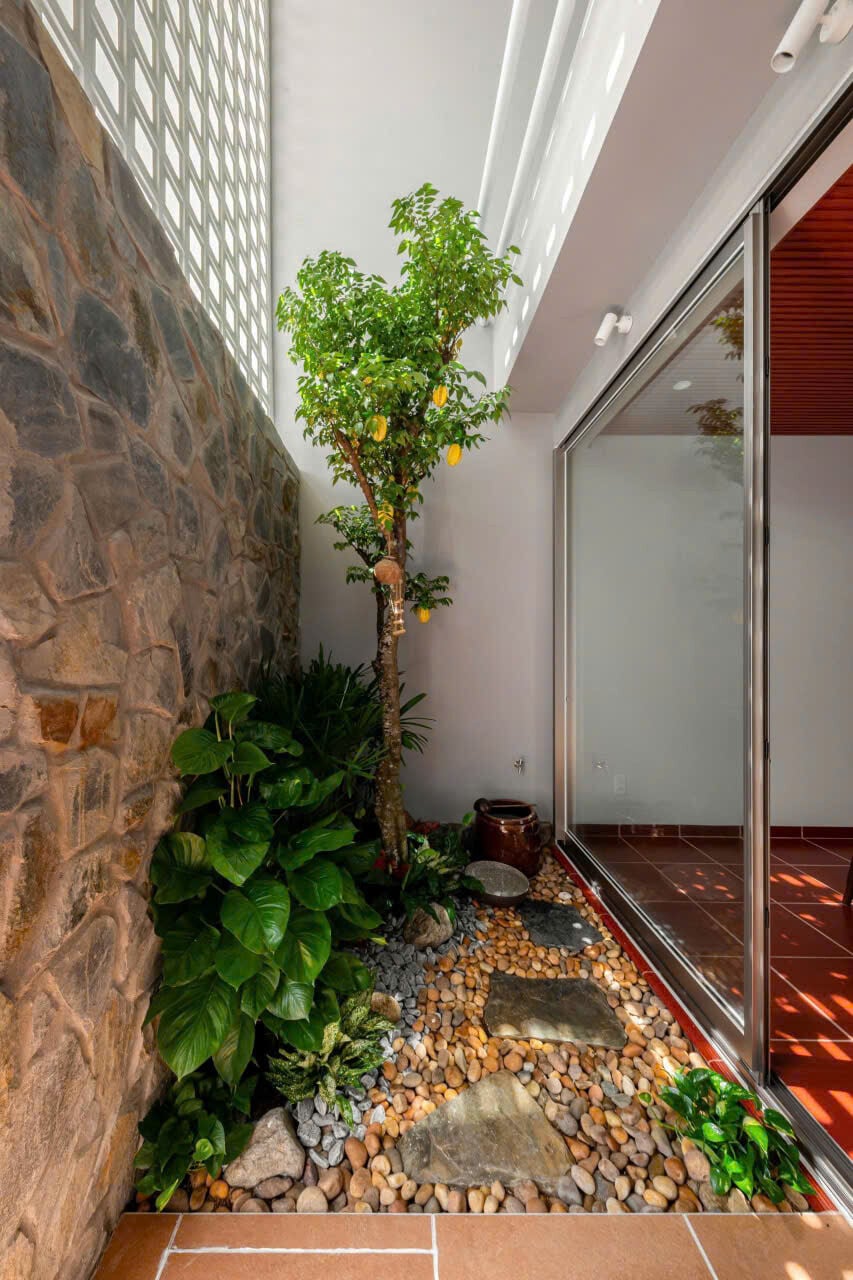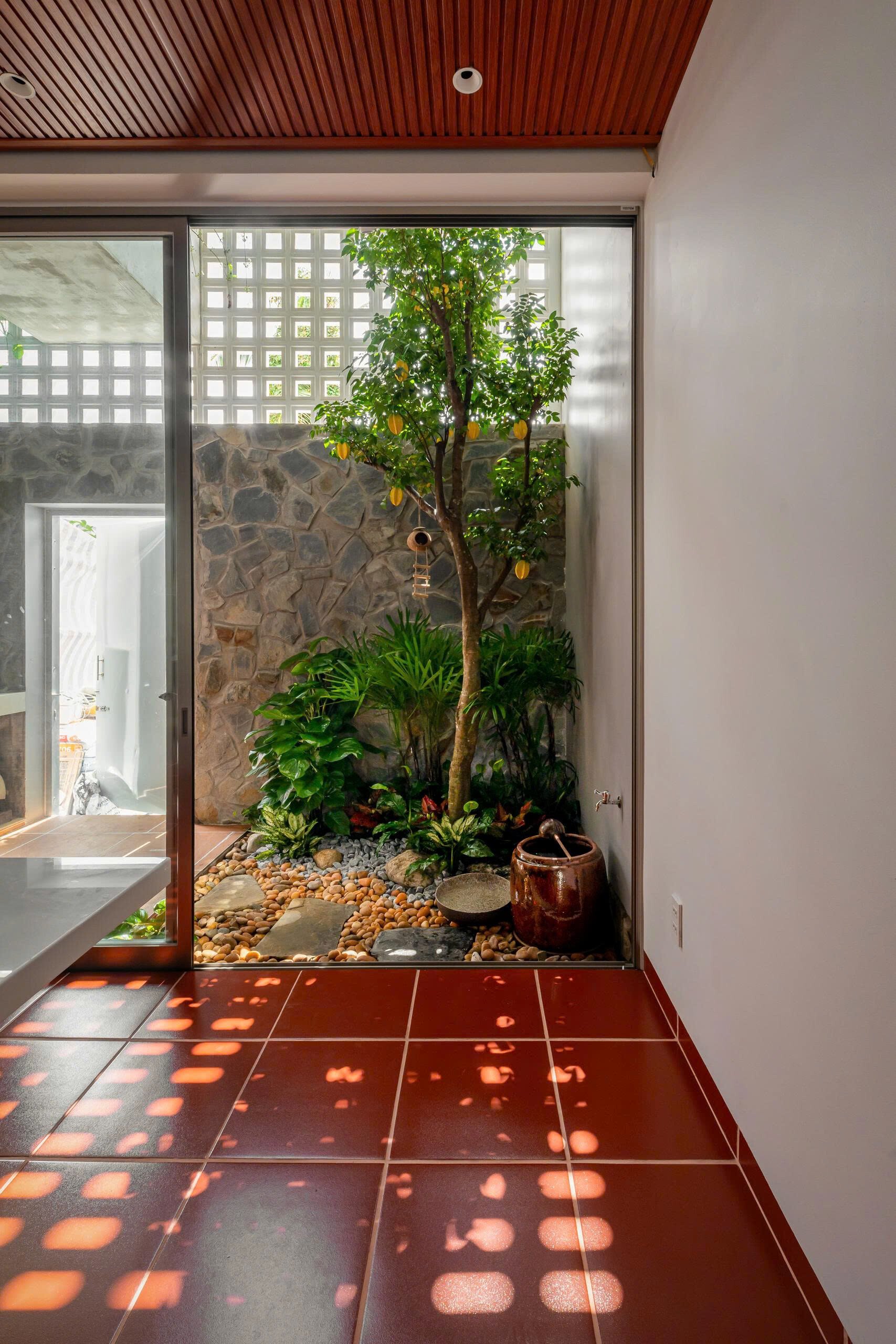 Sau lối đi khiêm nhường khuất ẩn là khu vực tĩnh tâm để gia chủ tìm lại sự cân bằng lại giữa xáo trộn của đời sống bên ngoài và tâm tính thuần khiết bên trong.