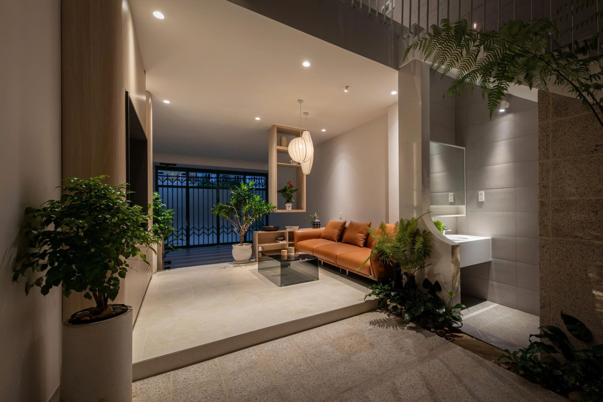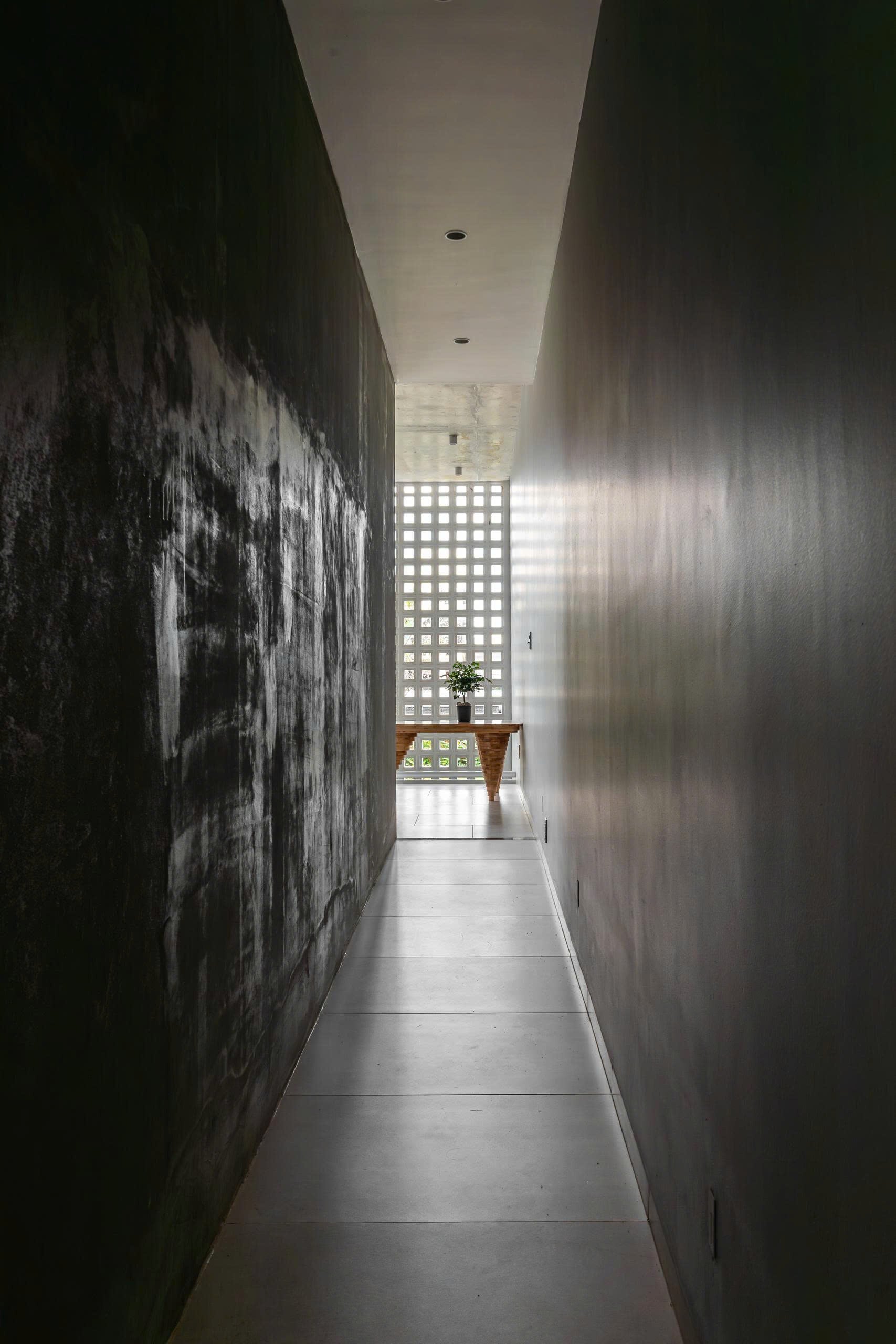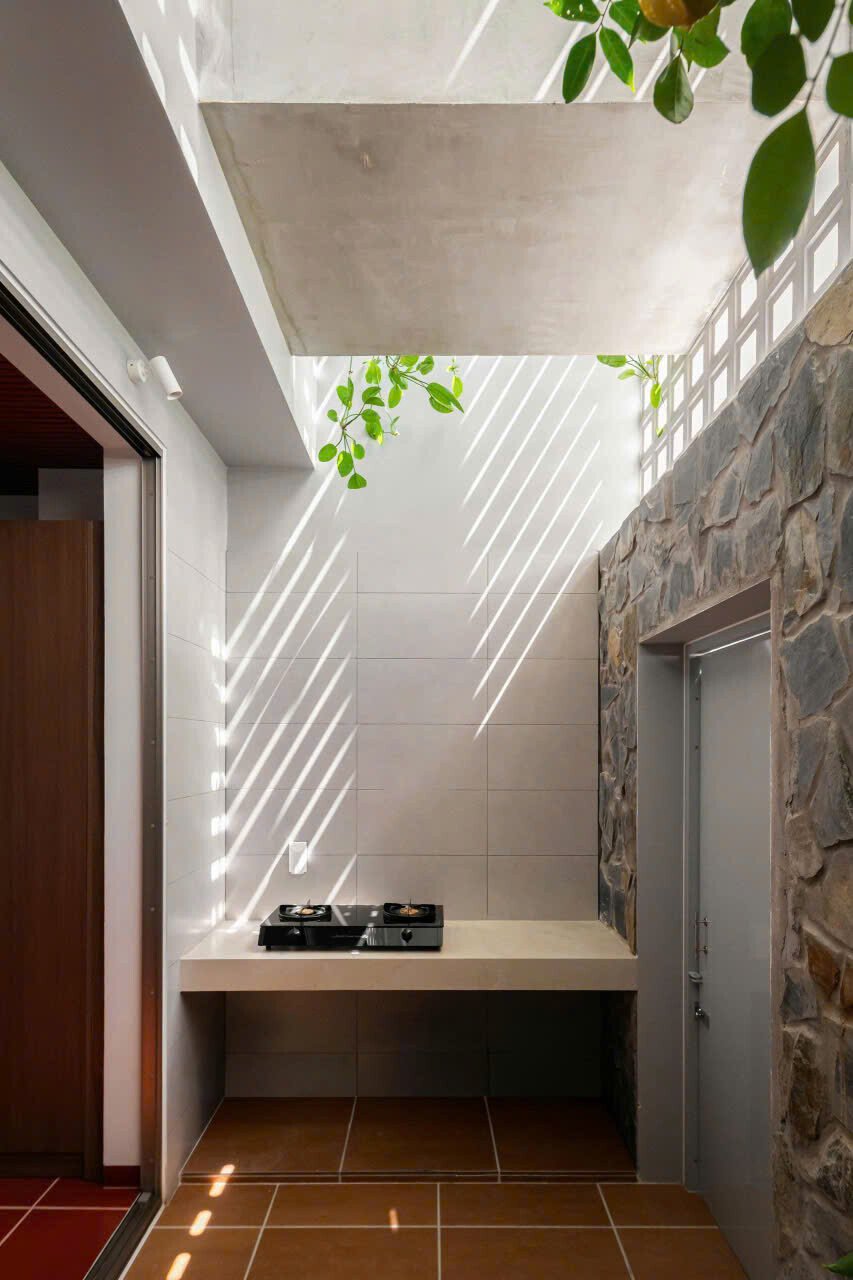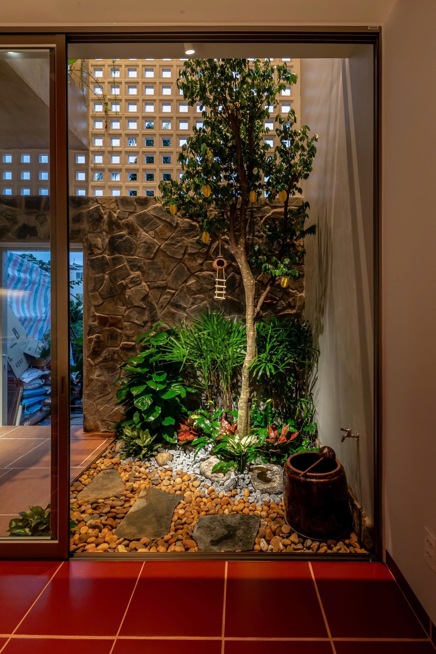 Sau lối đi khiêm nhường khuất ẩn là khu vực tĩnh tâm để gia chủ tìm lại sự cân bằng lại giữa xáo trộn của đời sống bên ngoài và tâm tính thuần khiết bên trong.
