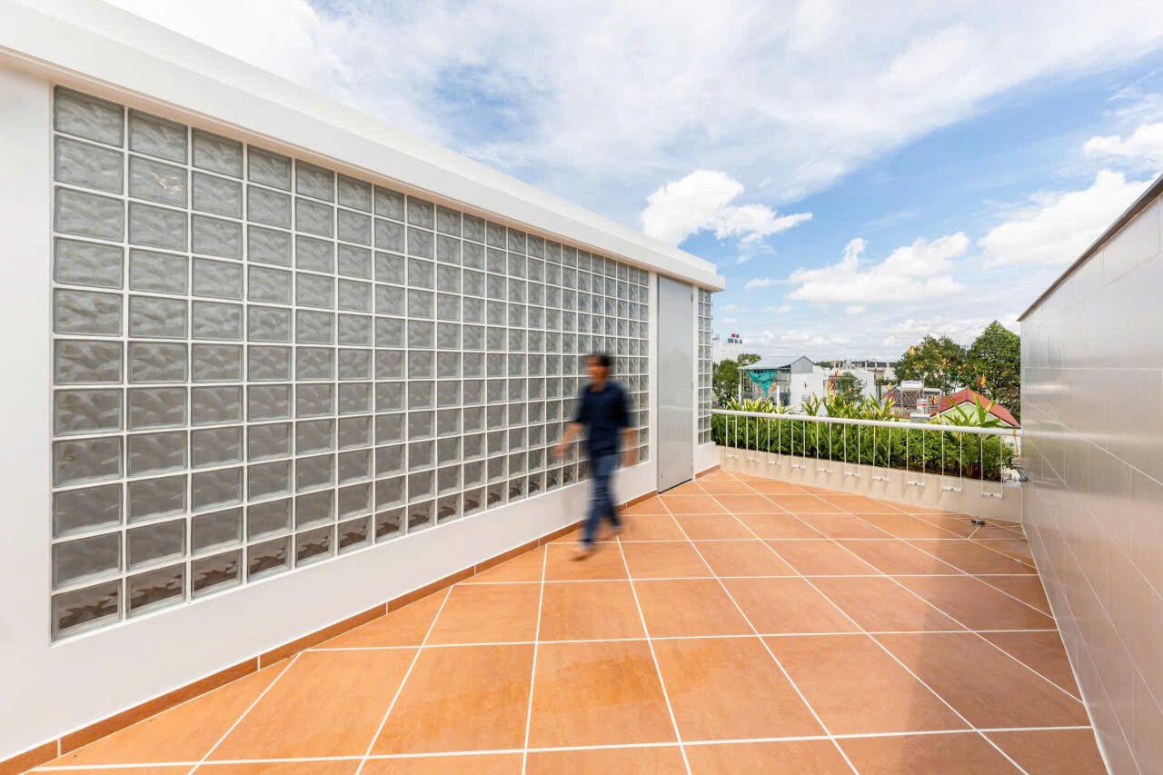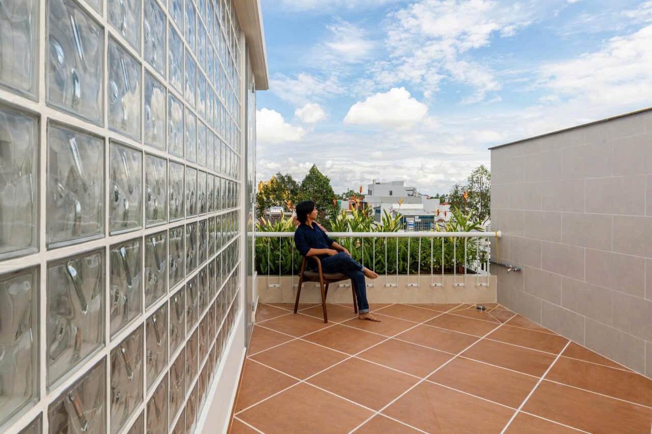 Sân thượng trồng cây buổi sáng và thưởng trăng ban đêm, gọn gàng đơn sơ dễ dàng cho việc chăm sóc vệ sinh.