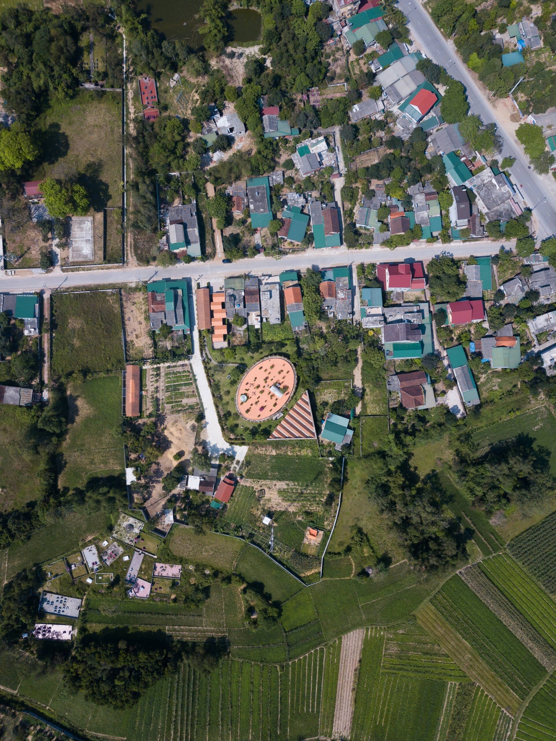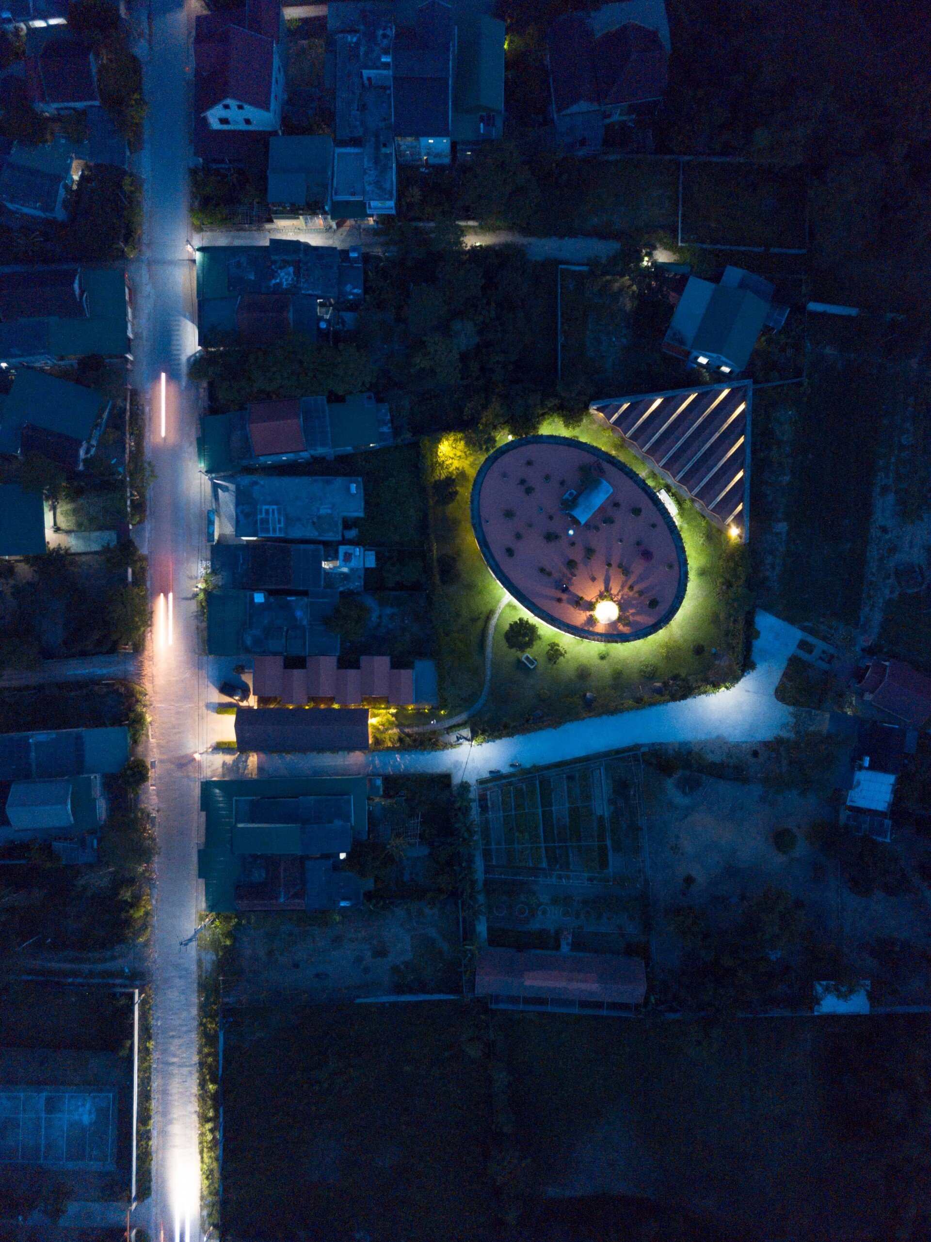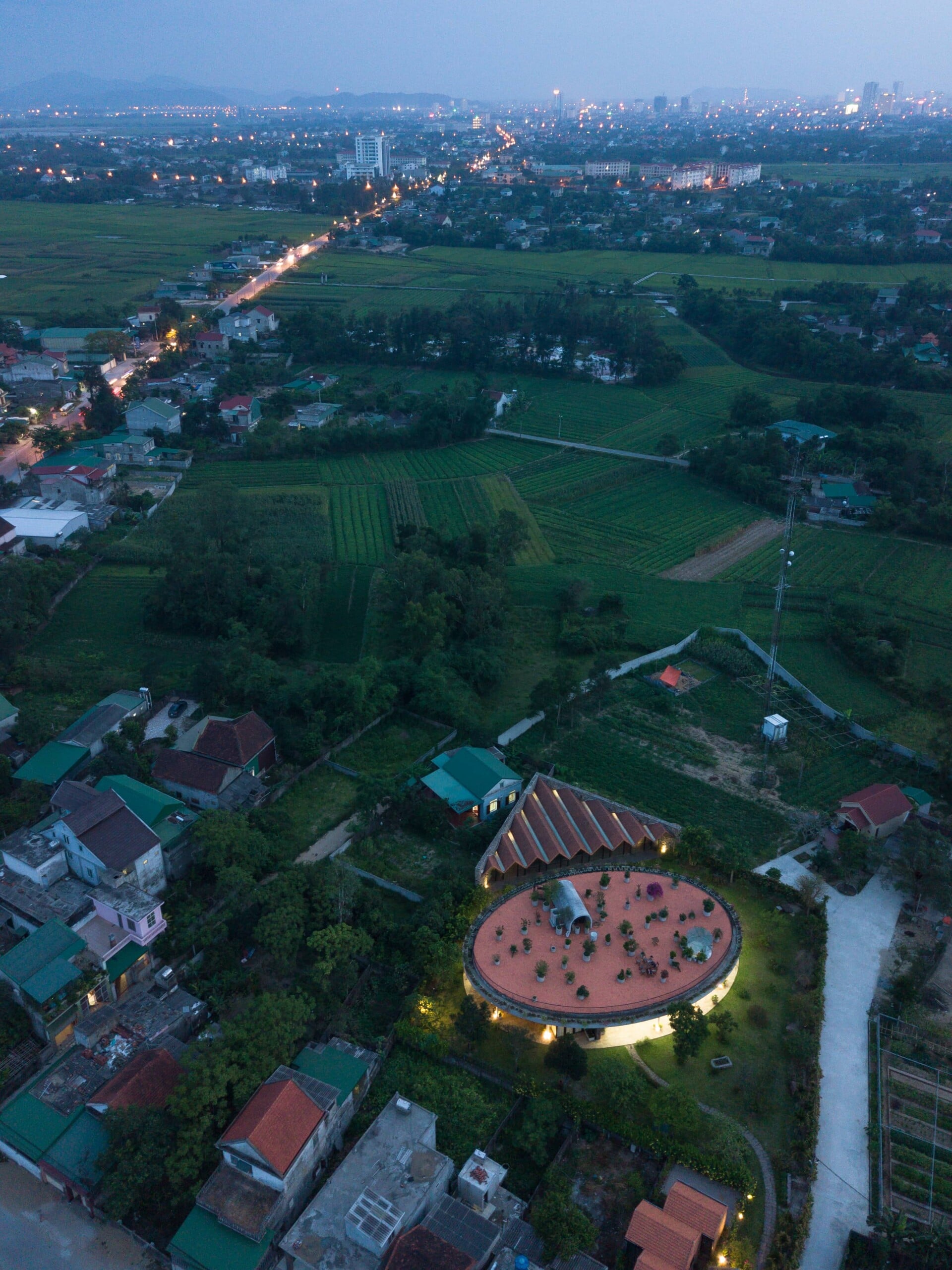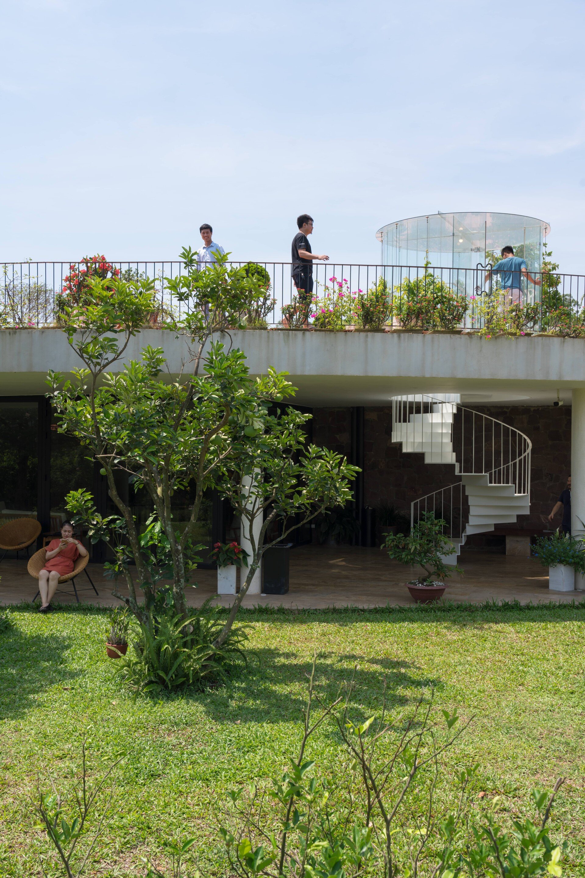 Ra khỏi toàn bộ ngôi nhà nhìn từ không trung xuống, cả tổng thể khối elip trở thành một mặt đất thu nhỏ chứa một khu vườn địa đàng mà ai cũng muốn có trên mái nhà, ở đó hiện ra cả một bầu trời mơ mộng của lũ trẻ về đêm và là một không gian lý tưởng cho những buổi tiệc mùa hè rộn rã.