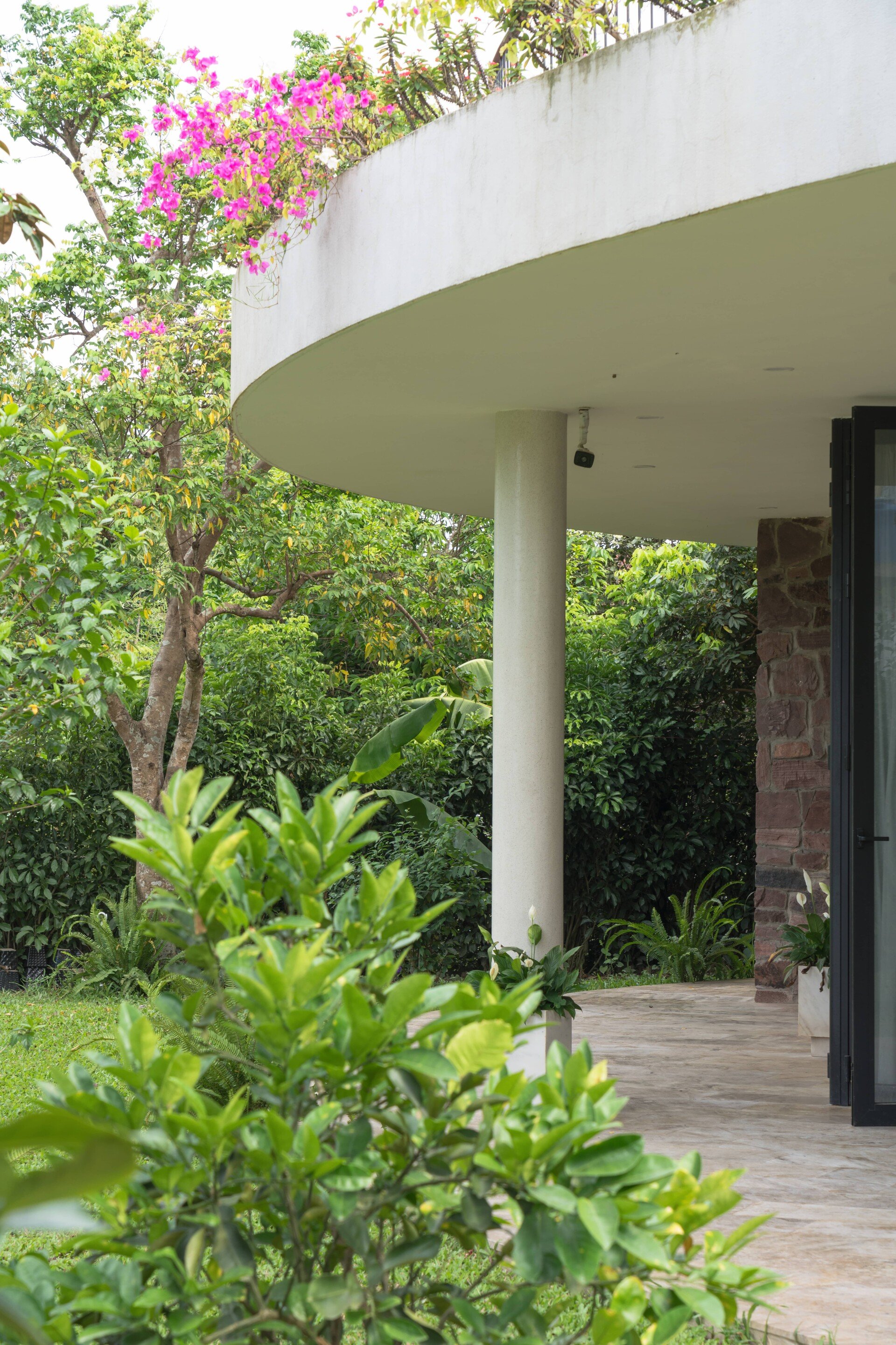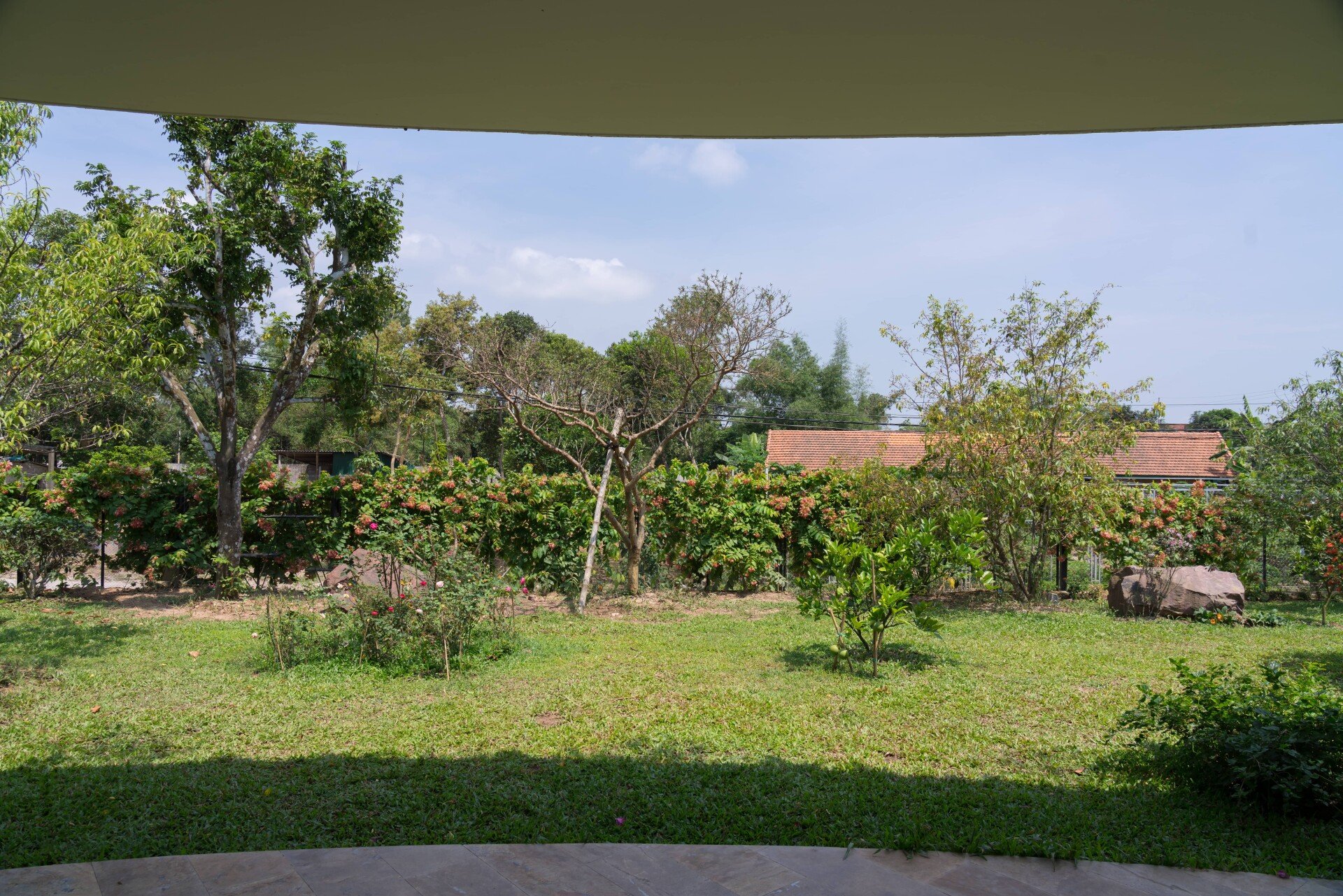 Nhưng tất cả ba khối tách rời ấy tổng thể lại hài hòa kết nối bởi một điền viên xanh mướt những cây ăn trái giản đơn được trồng tự do và thay đổi theo thời gian của căn nhà.
