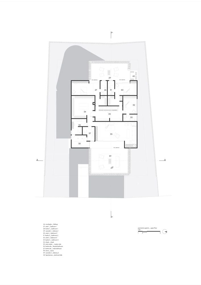 Trong khối này, mỗi phòng ngủ đều có ban công riêng hoặc cửa sổ lớn hướng ra cây xanh. Master suite được ưu tiên đặt về phía ngắm hoàng hôn, nối với một mái bằng nhỏ - có thể xem như rooftop - để gia chủ sử dụng như điểm ngắm cảnh, đọc sách hoặc thưởng trà. Tại đây, tầm nhìn mở ra hồ nước và thảm thực vật cerrado đặc trưng, giúp gia chủ có một không gian tĩnh tại đúng nghĩa riêng tư.