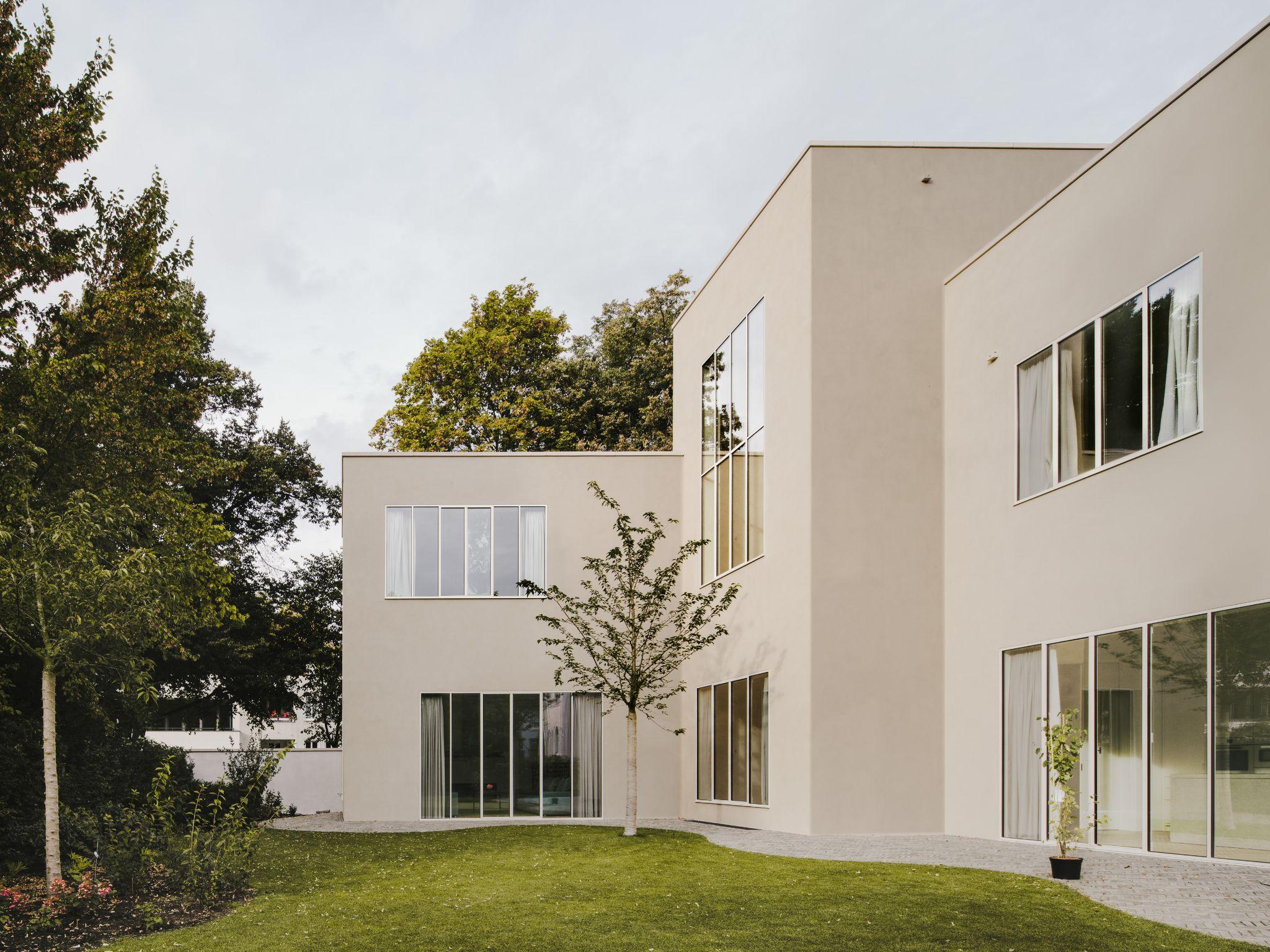 Ngôi nhà do Studio Mark Randel thiết kế nằm ở Bogenhausen (Munich, Đức), trên lô góc gần sông Isar và English Garden. Bối cảnh khu dân cư đa phong cách đặt ra yêu cầu kép: gia chủ muốn riêng tư tuyệt đối từ phía đường phố nhưng vẫn cần không gian sáng, thoáng và gắn bó với vườn sau.