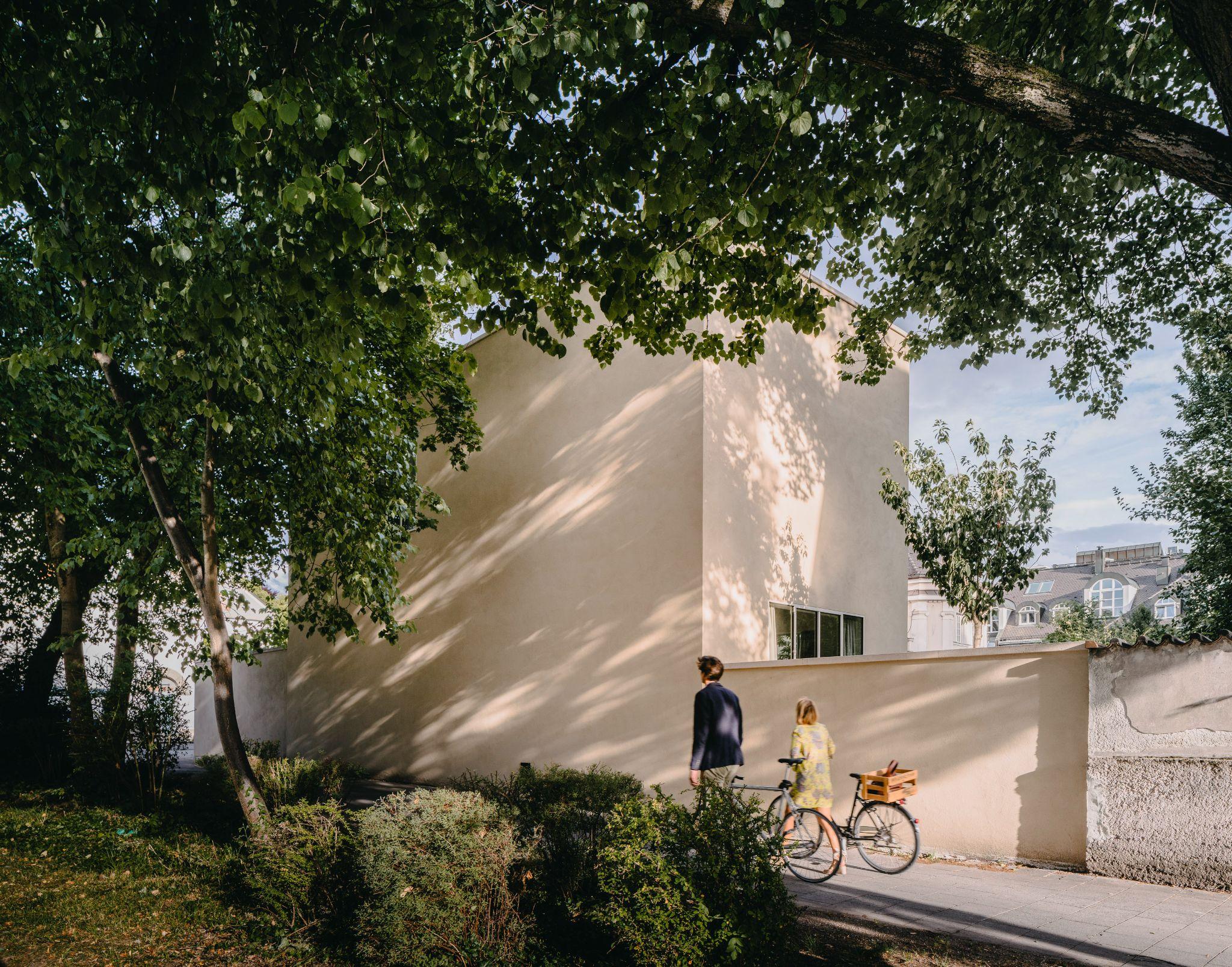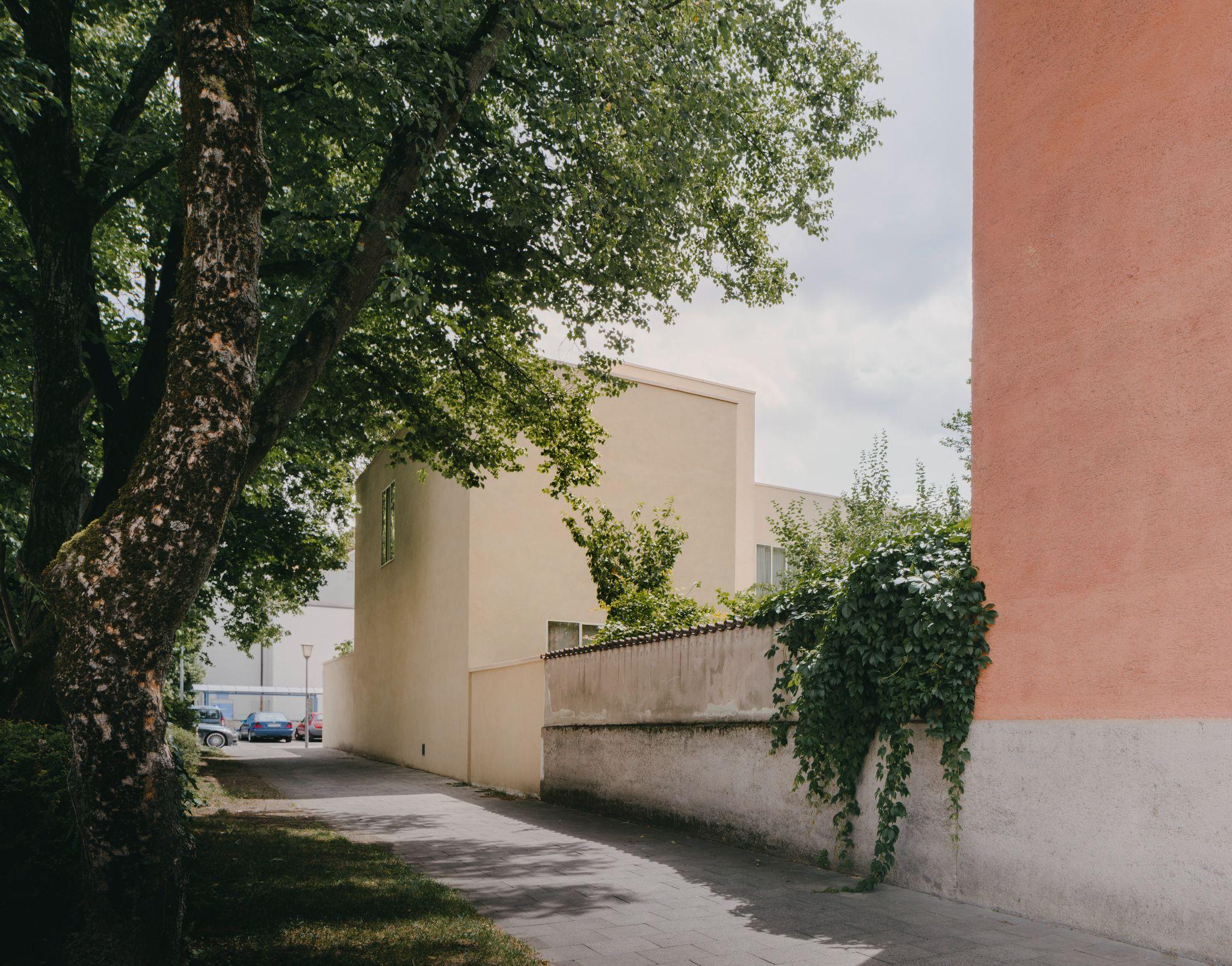 Khu Bogenhausen có mật độ công trình dày, nhiều phong cách khác nhau và một quảng trường nhỏ tại nút giao. Ở vị trí lô góc, ngôi nhà rất dễ bị “soi chiếu” từ nhiều hướng.
