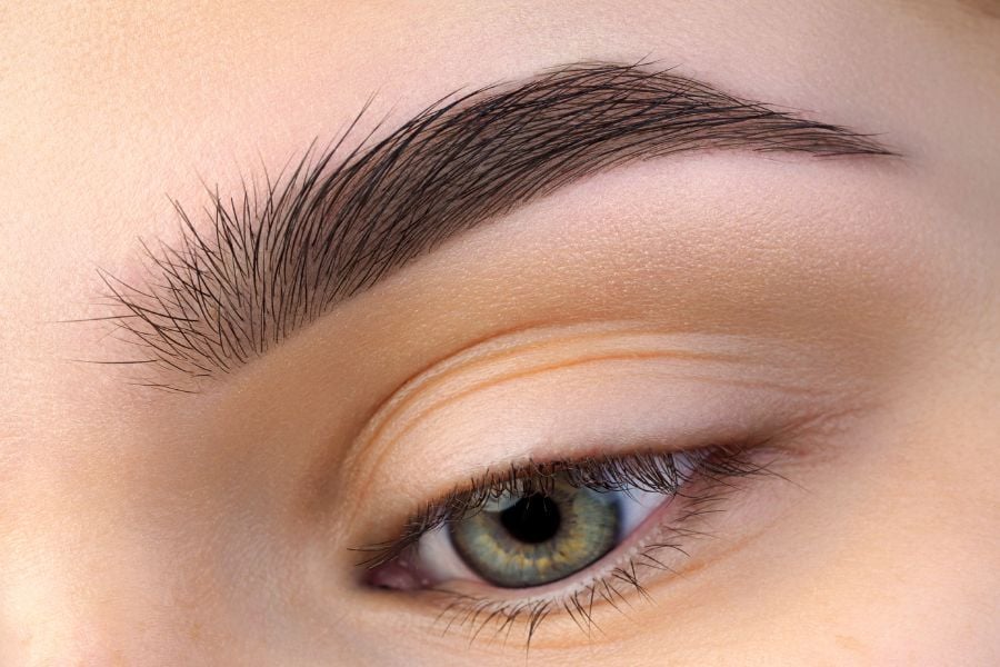 Bạn có thể tạo dáng mày lưỡi mác tại nhà bằng cách tỉa gọn theo khung đầu dày - thân cong - đuôi thuôn, phù hợp với người có lông mày dày