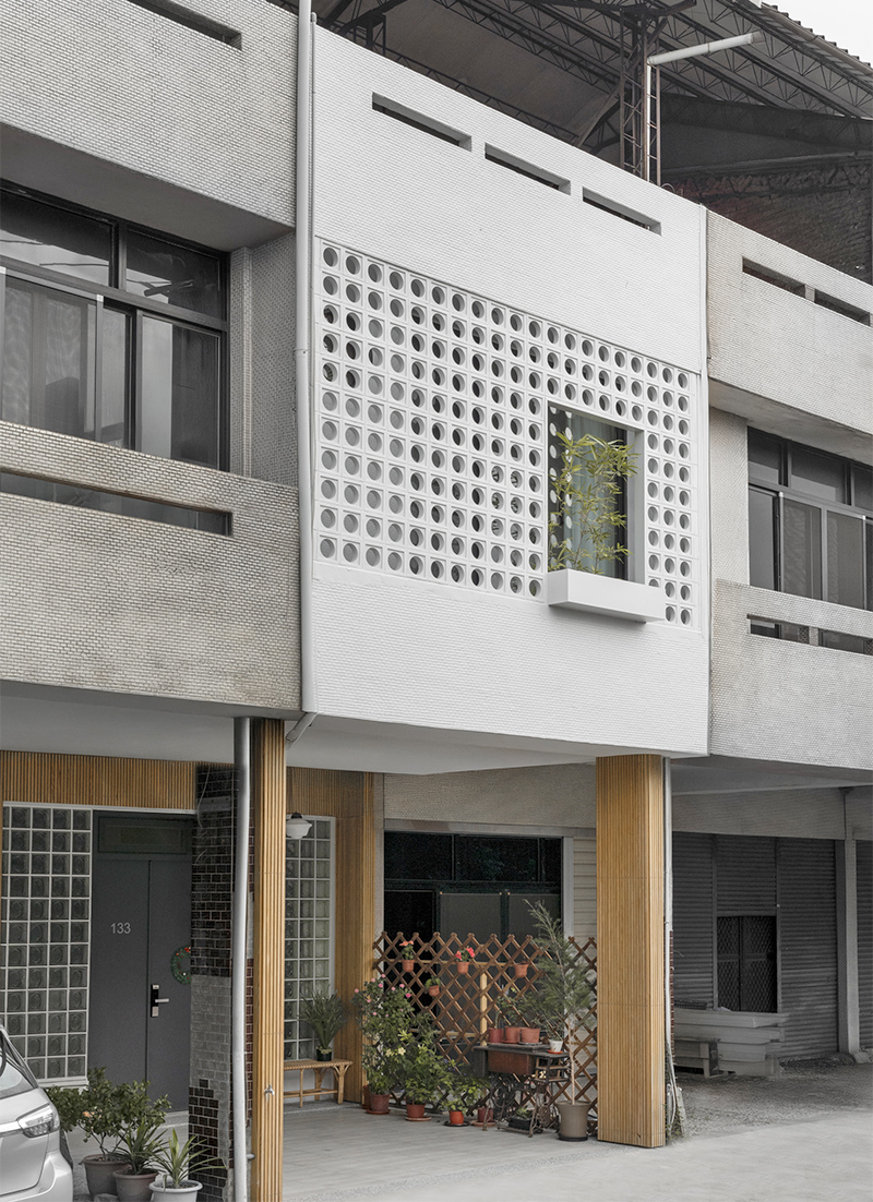 Giữa bối cảnh đô thị Wuri, Đài Trung dày đặc và lộn xộn, căn nhà phố 50 năm tuổi đã được Yi Rang Design hồi sinh thành không gian sống kết hợp xưởng nghệ thuật cho cặp vợ chồng gia chủ. Đối mặt với hiện trạng xuống cấp trầm trọng và tầm nhìn hạn chế, các KTS đã ứng dụng gạch hoa gió và gạch kính như một lớp màng lọc thông minh cho ra đời một tổ ấm hoàn hảo nơi gia chủ tìm thấy sự an yên trong từng tấc vuông không gian.