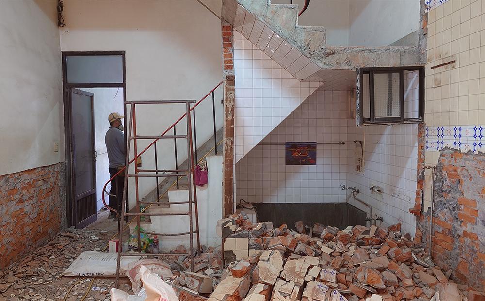 Phòng vệ sinh cũ được phá vỡ và di dời cho phù hợp với bố cục căn nhà