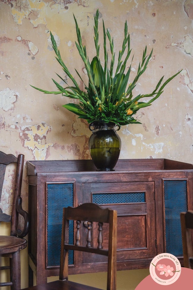 Vì lay ơn có thân dài và dáng vươn thẳng nên bình cao sẽ giúp bố cục hài hòa, tránh cảm giác lệch tỉ lệ.