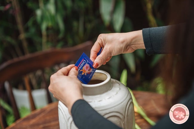 3. Thả từng cành hoa vào, xoay theo hướng tự nhiên để hoa tỏa đều.