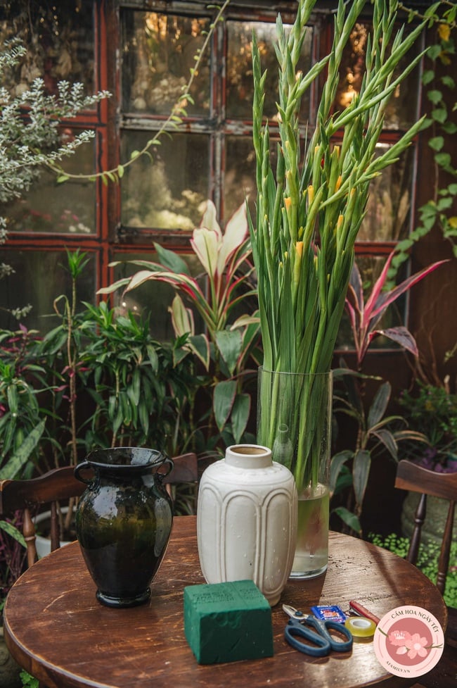 Để cắm hoa lay ơn đẹp, bạn chỉ cần một số dụng cụ cơ bản: