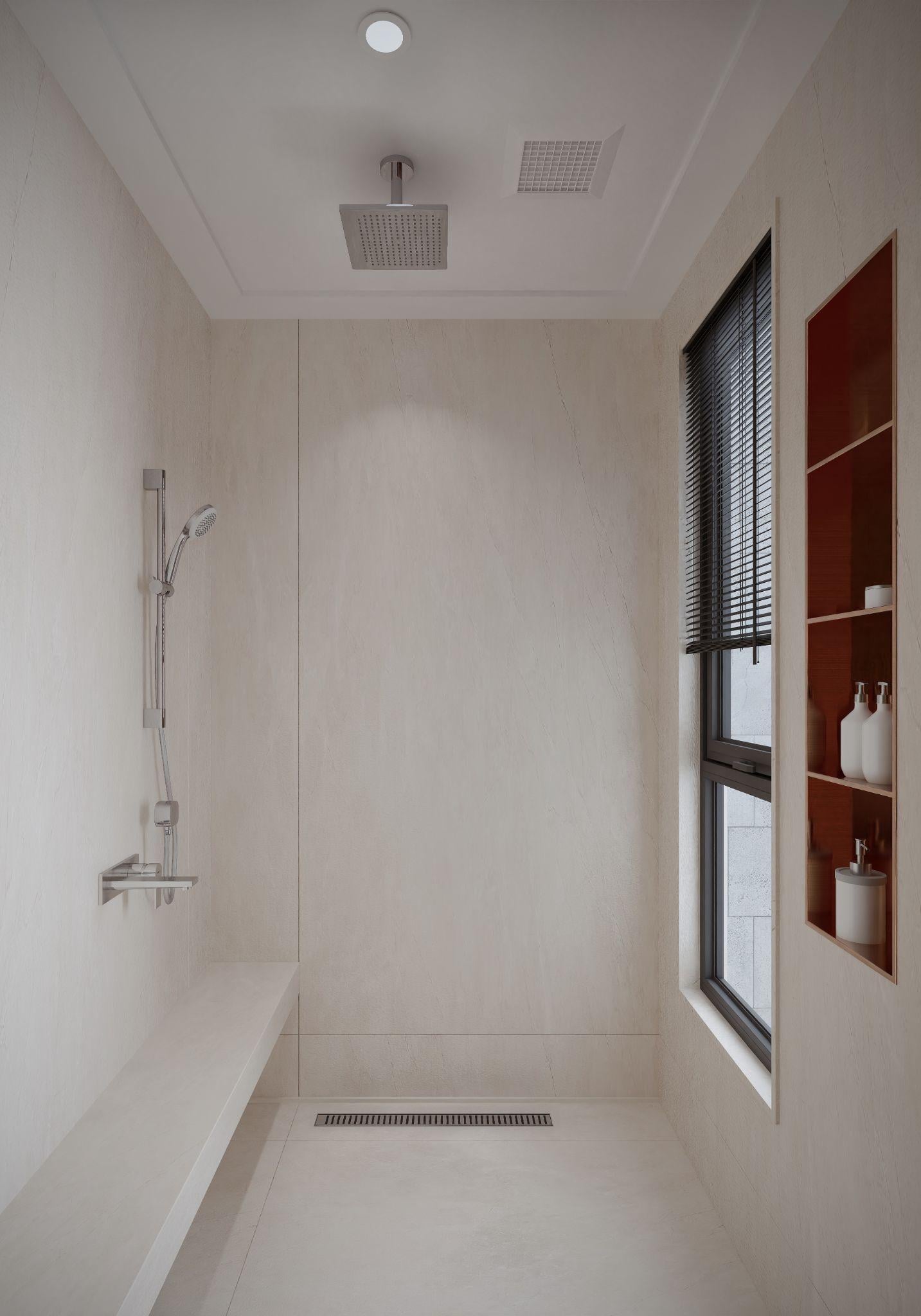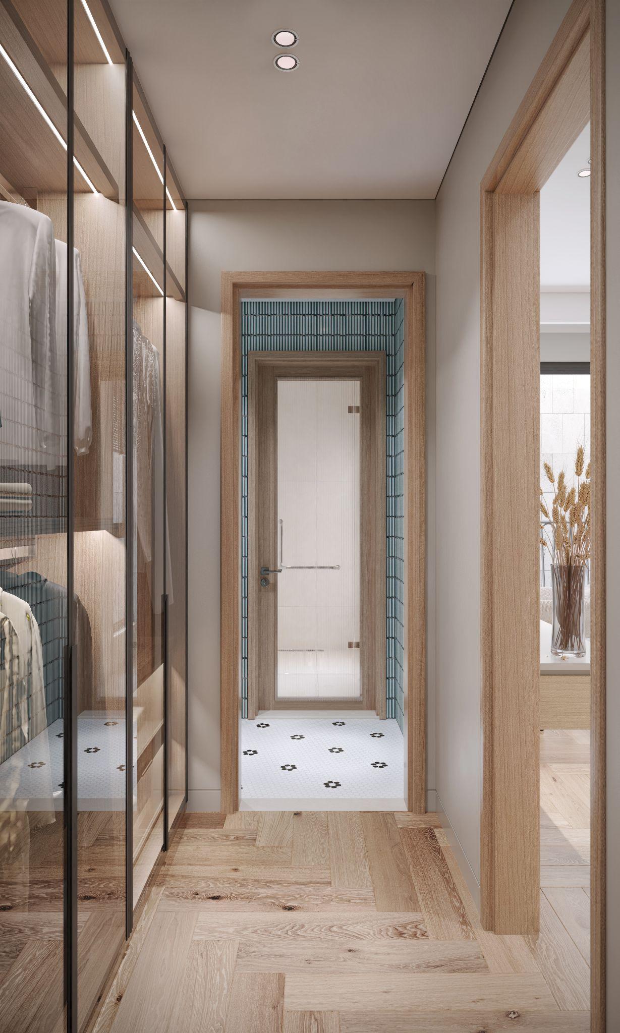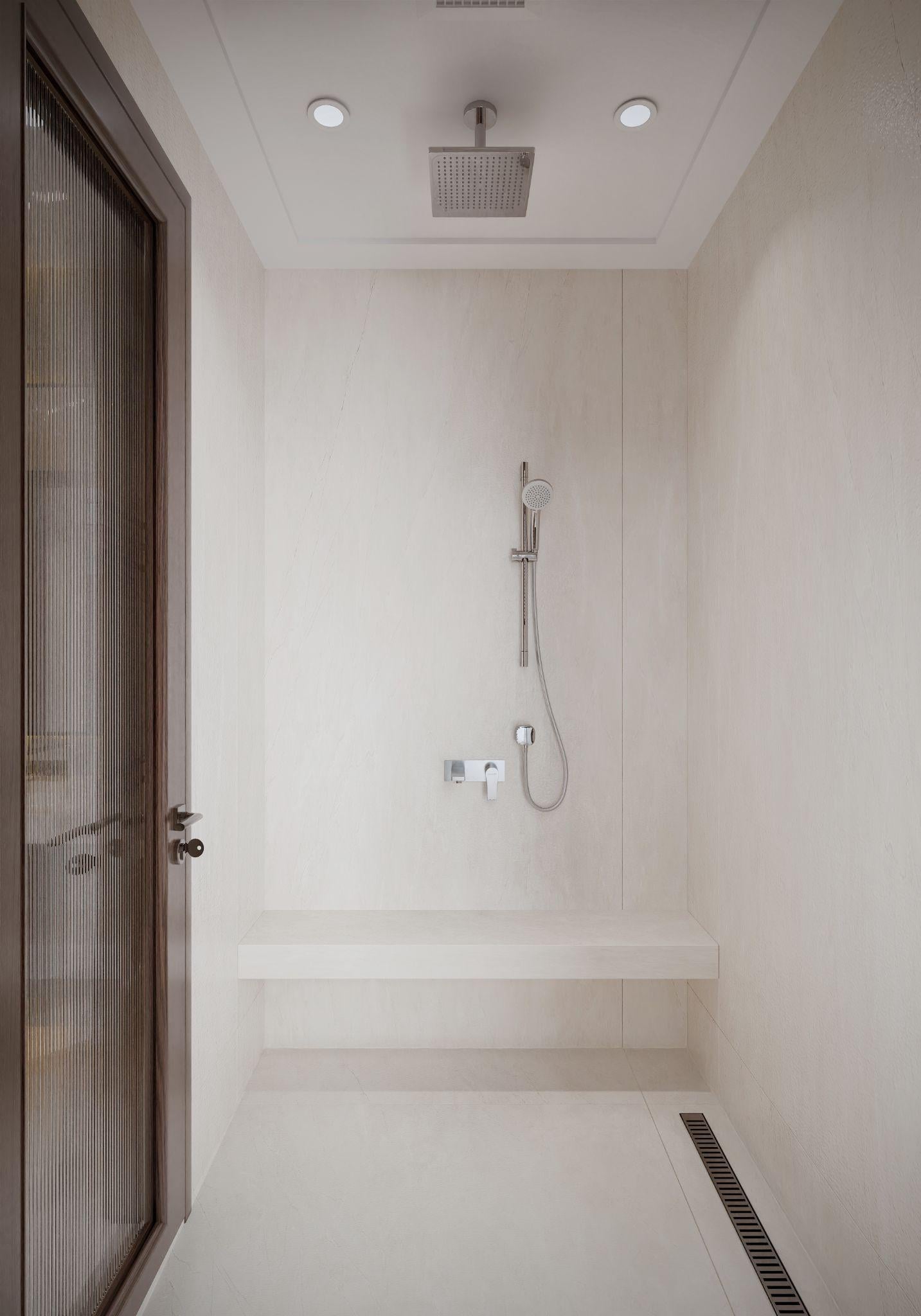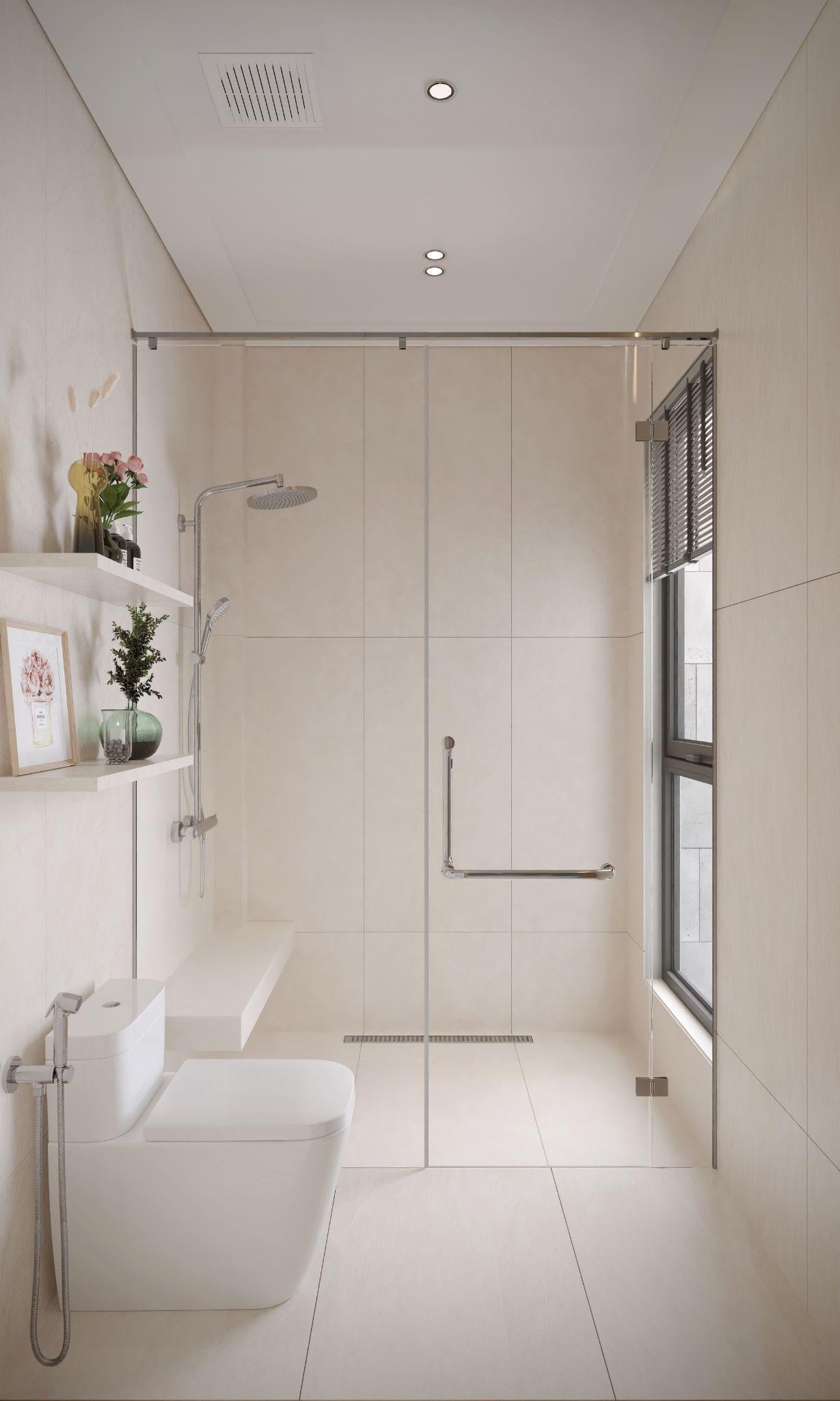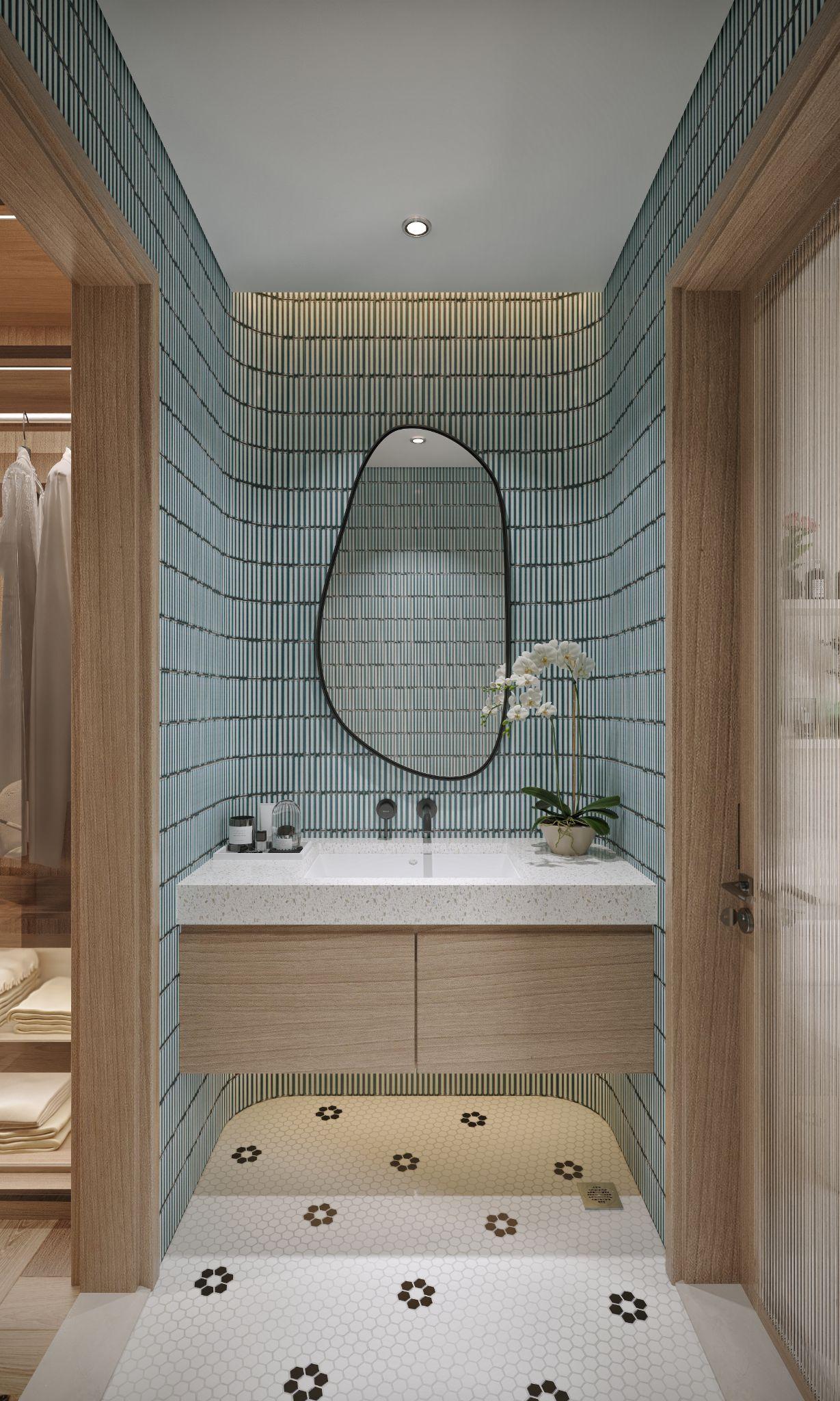 Không gian nội thất đi theo bảng màu trung tính nâu, be, trắng kết hợp chất liệu đá, gỗ veneer và ánh sáng vàng ấm áp, tạo nên sự ấm cúng nhưng vẫn giữ tinh thần hiện đại, tối giản. Điểm cộng lớn là các giải pháp lưu trữ âm tường giúp nhà luôn gọn gàng, không có cảm giác chật chội dù được xây cao tầng.