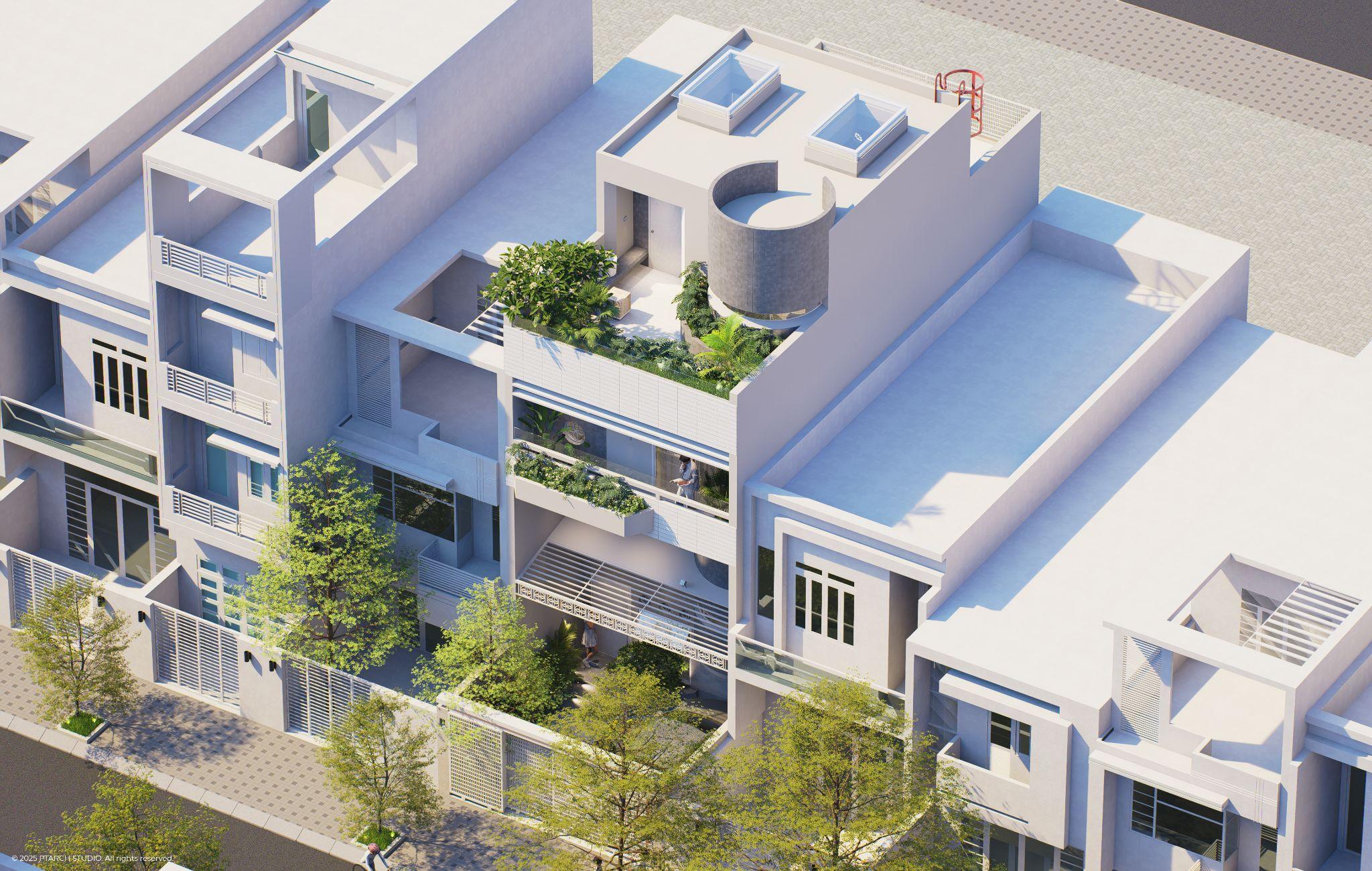 Nằm trong lòng khu đô thị tại Ngũ Hành Sơn (Đà Nẵng), NGŨ HÀNH HOUSE là tổ ấm được thiết kế cho một gia đình trẻ ba người với mong muốn kết nối chặt chẽ giữa các thế hệ, giữ được sự riêng tư nhưng vẫn gắn bó, tiện nghi nhưng ấm cúng. Ngôi nhà còn là nơi đón ông bà, bạn bè, là nơi lưu giữ tinh thần hiện đại nhưng không rời xa giá trị truyền thống – một bài toán đầy thách thức mà PT ARCH STUDIO đã giải bằng thiết kế mang đậm triết lý sống và khí hậu bản địa.