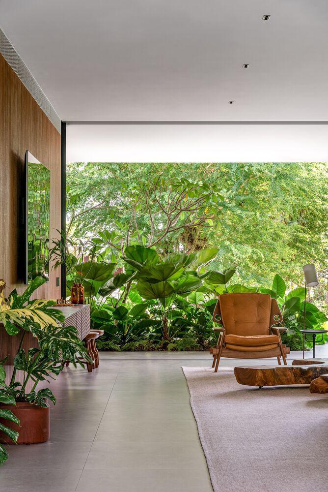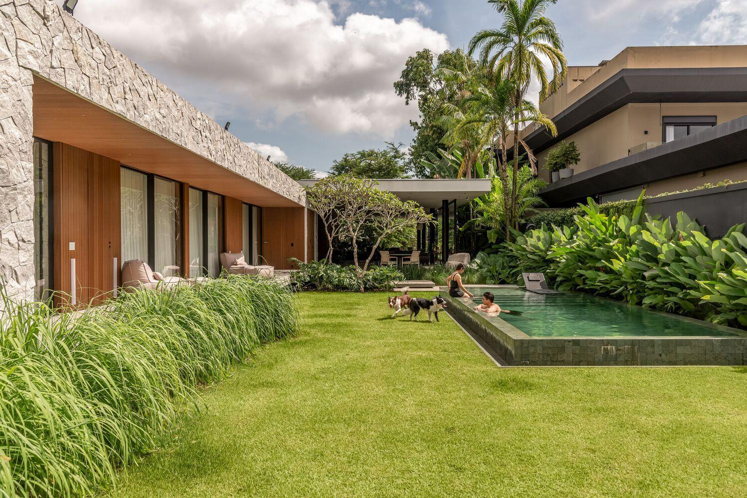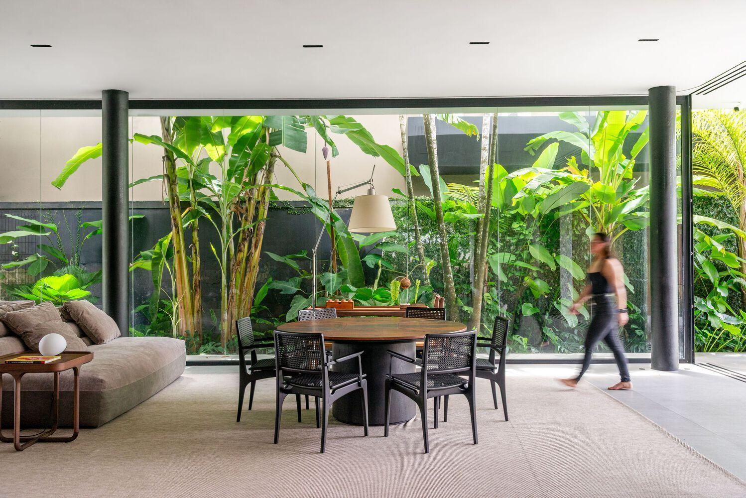 Vách kính như một lớp vỏ bảo vệ giúp ngôi nhà thích ứng với khí hậu nhiệt đới