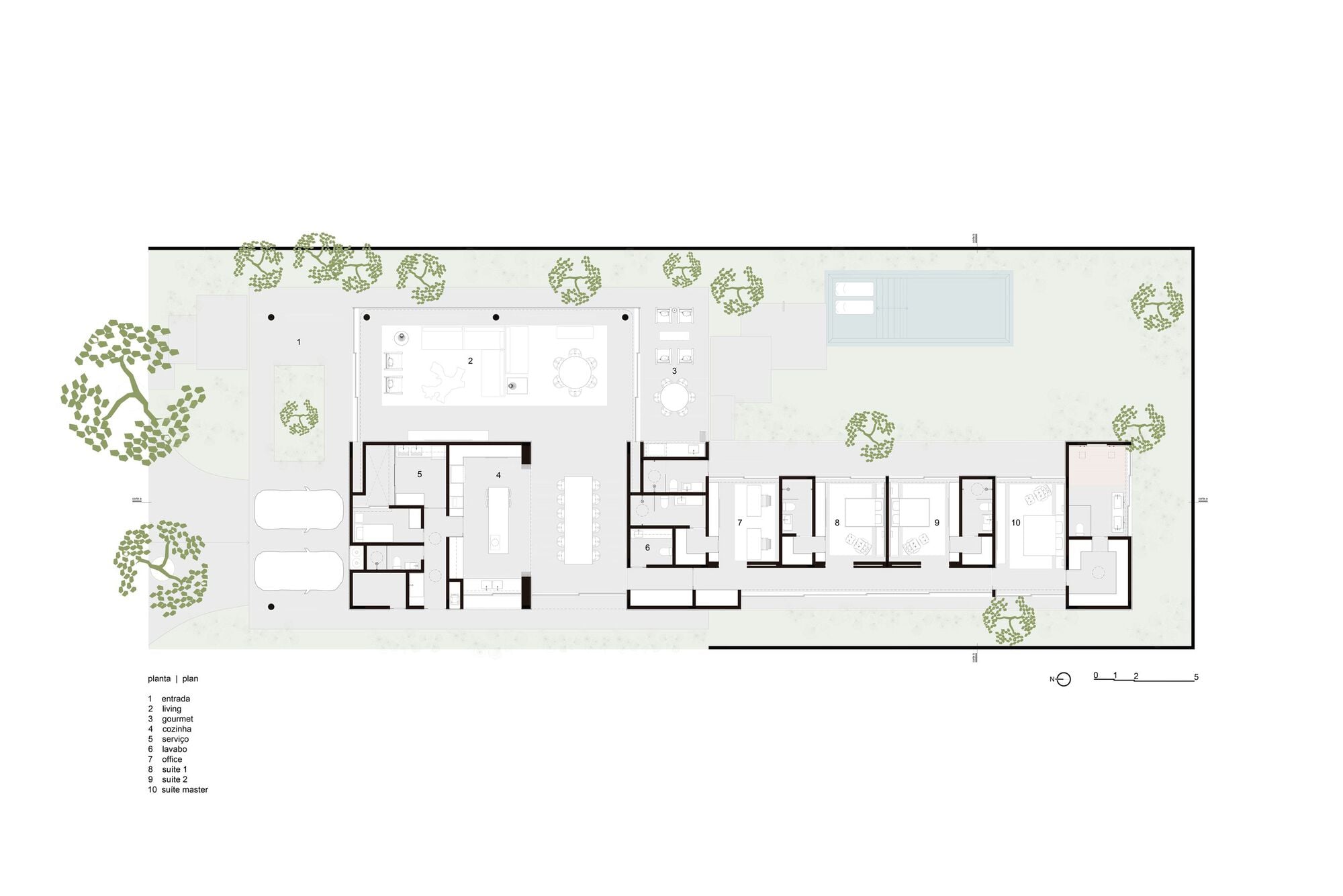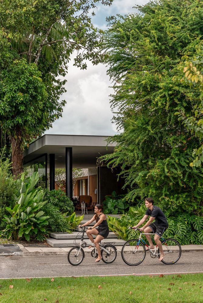 Val-de-Cans, khu vực nơi Jenga House tọa lạc, mang đặc trưng của khí hậu nhiệt đới Brazil với độ ẩm cao, lượng mưa lớn và thảm thực vật phát triển mạnh mẽ. Thay vì áp đặt một khối công trình đồ sộ lên khu đất, các kiến trúc sư đã lựa chọn cách tiếp cận khiêm nhường và tôn trọng tuyệt đối hiện trạng.