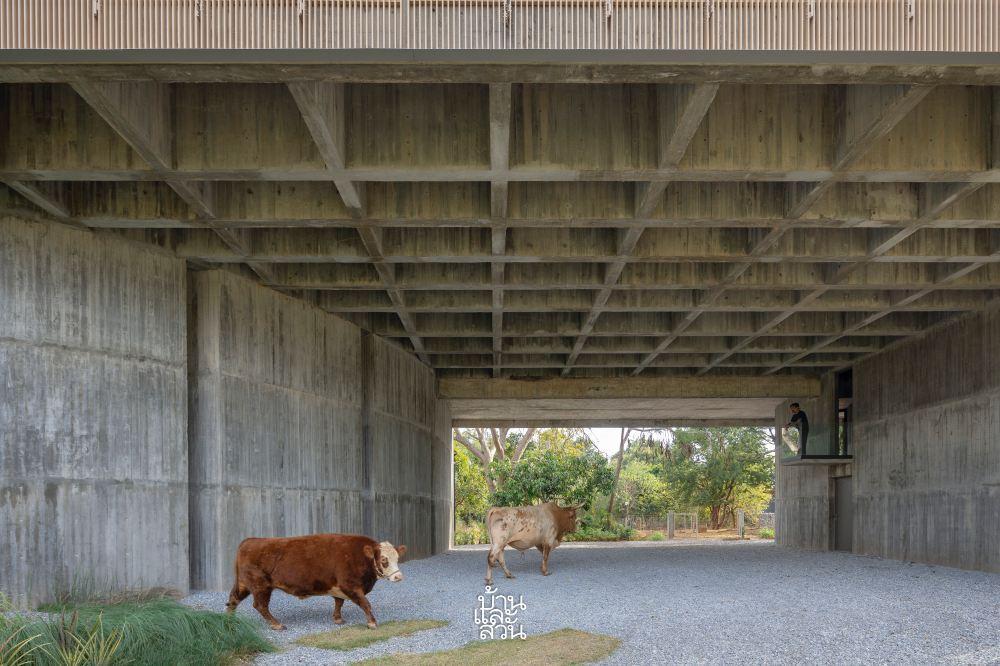 Sự tương tác thú vị giữa gia chủ ở trên cao và đàn bò ở dưới đất, tạo nên một bức tranh sinh hoạt độc đáo chỉ có tại W House II