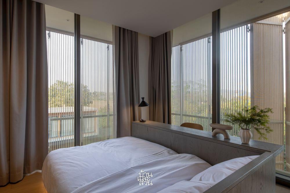Khu vực nghỉ ngơi được đẩy sâu vào phía trong để đảm bảo sự yên tĩnh. Đặc biệt, phòng ngủ Master sở hữu thiết kế cửa sổ góc không đố kính, mở ra góc nhìn vô cực về phía dãy núi. Tại đây, mỗi sáng thức dậy, gia chủ được thiên nhiên đánh thức bởi bình minh rực rỡ ngay đầu giường.