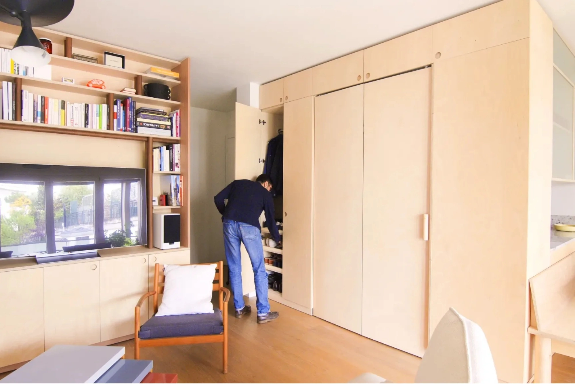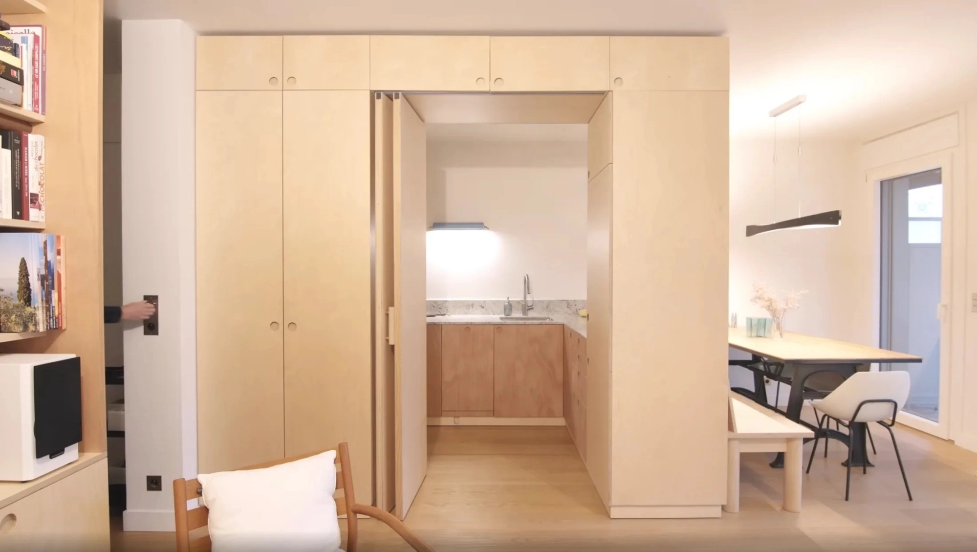 3. Căn hộ 49m2 tại Paris: Ẩn hoàn toàn bếp sau vách gấp