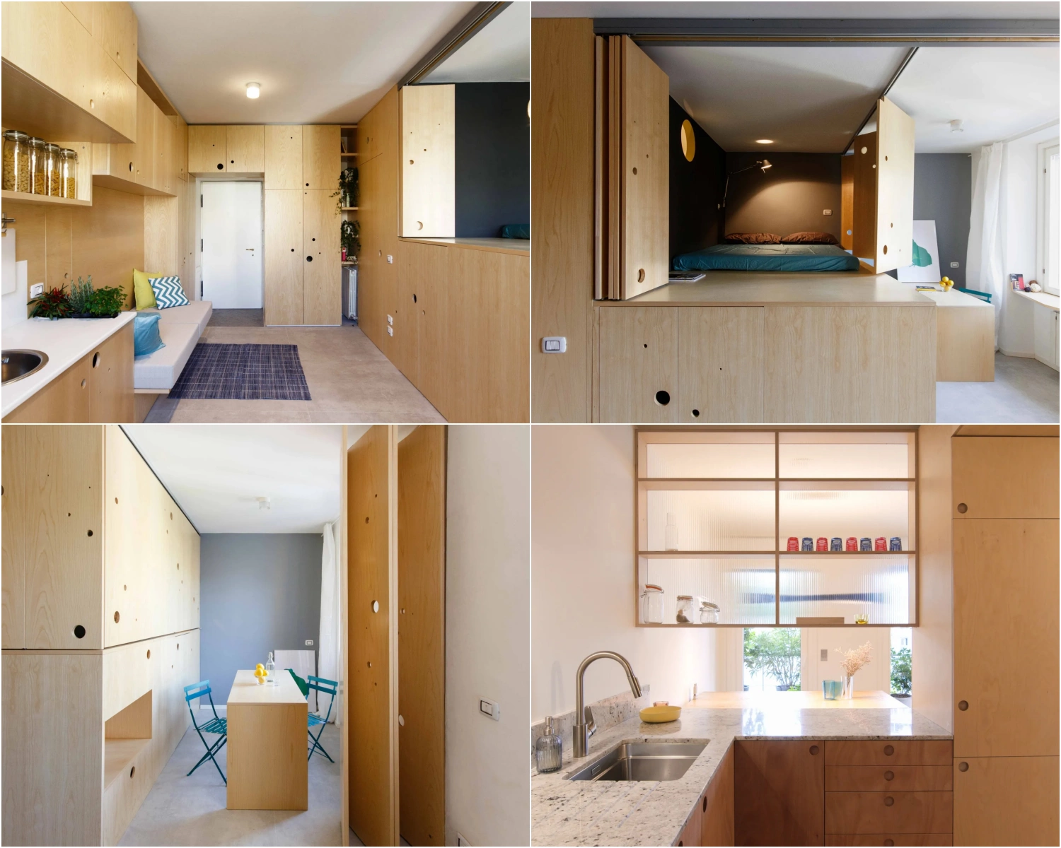 5. Căn hộ 32m2 tại Milan: Giường ngủ giữa nhà, vách gấp “biến hình”