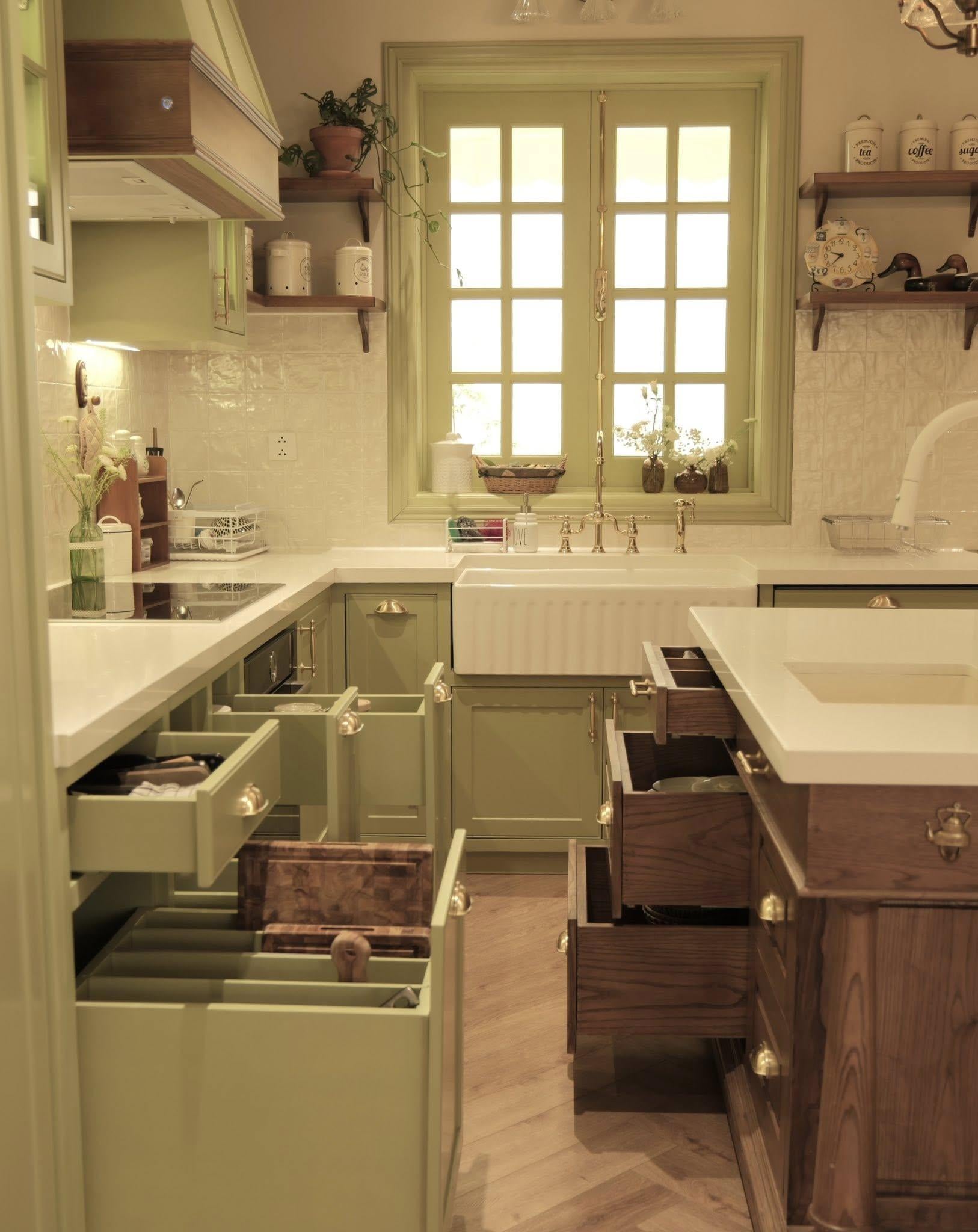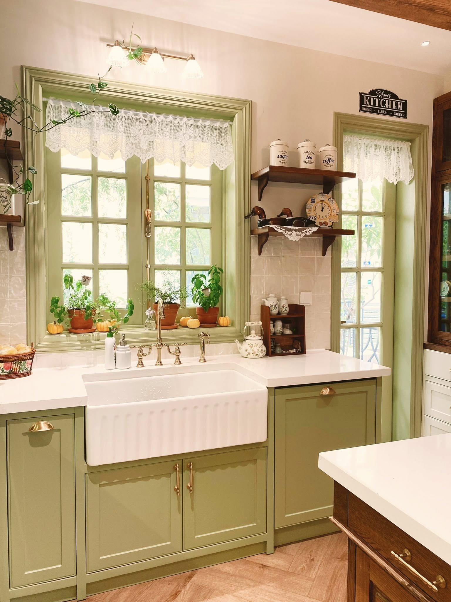 Căn bếp xanh bơ đậm chất cottagecore: Tổ ấm nhỏ của người yêu nội trợ
