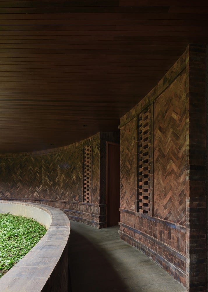 Tất cả các phòng được sắp xếp dọc theo vành tròn, hướng ra ngoài để đón cảnh quan xung quanh. Đồng thời, khu vườn là trung tâm gắn kết các hoạt động diễn ra bên trong công trình