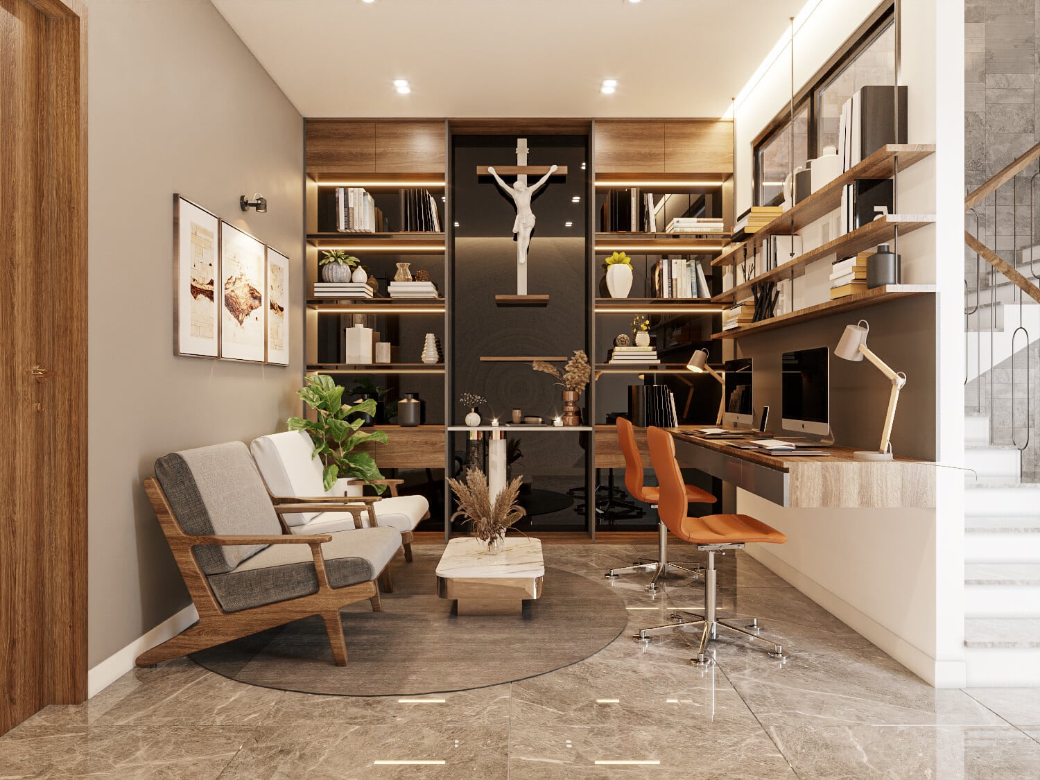 - Lầu 2 (Tầng 3): Khu vực yên tĩnh gồm phòng thờ và 2 phòng ngủ cho các thành viên khác trong gia đình.