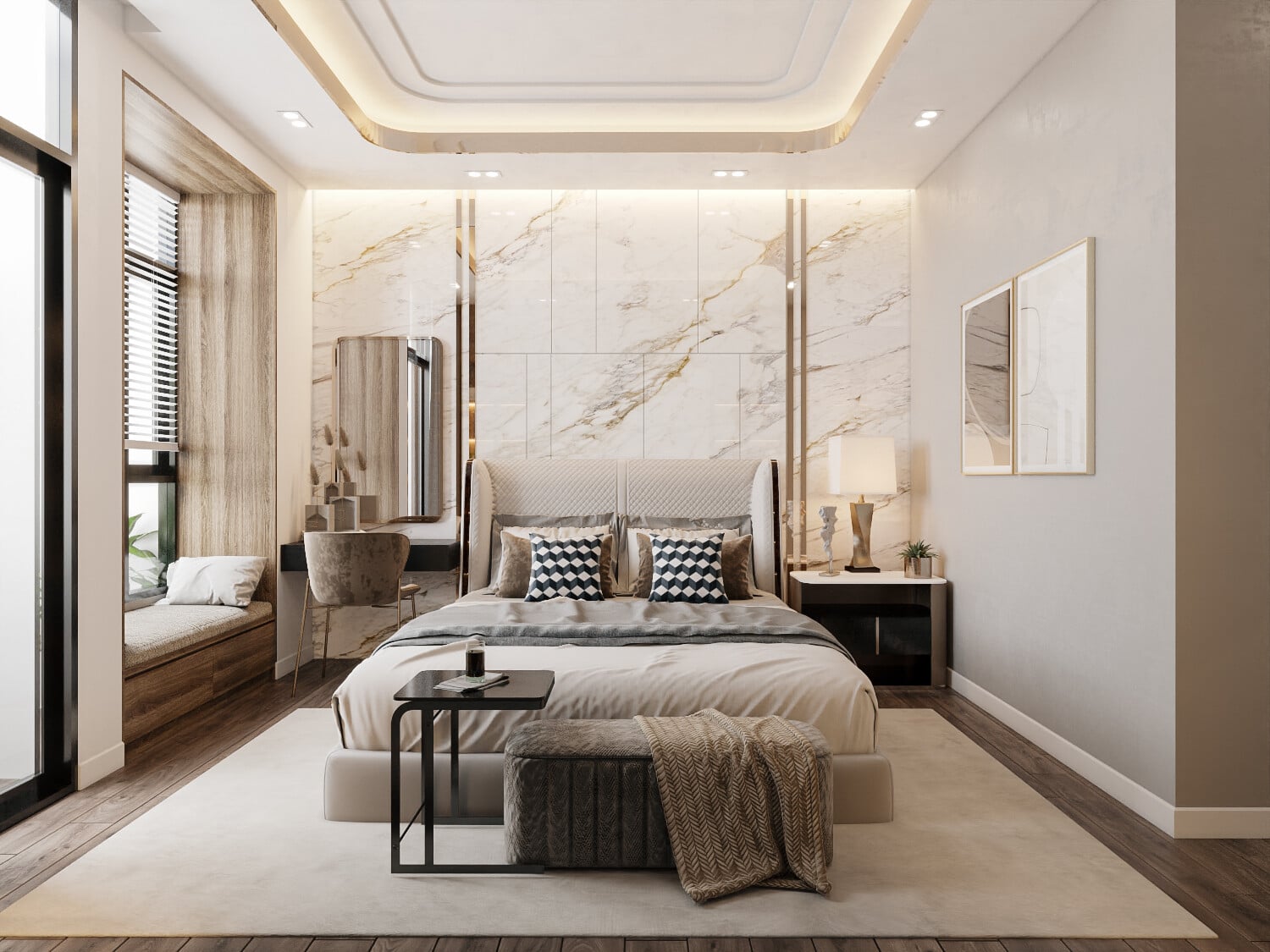 - Lầu 1 (Tầng 2) - Trái tim của tổ ấm: Không gian sinh hoạt chung (SHC) được thiết kế thông suốt với khu bếp ăn. Đặc biệt, phòng ngủ Master được tích hợp phòng Closet rộng rãi, mang lại trải nghiệm nghỉ dưỡng tiện nghi.