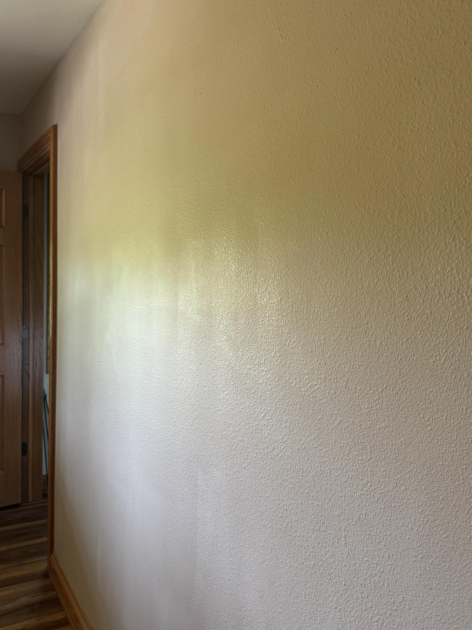 • Mẹo chuyên gia: Tắt hết đèn trần, bật đèn pin điện thoại chế độ sáng nhất và rọi sát, song song với mặt tường. Ánh sáng xiên sẽ tạo ra bóng đổ, giúp bạn phát hiện ngay lập tức những chỗ tường bị lồi lõm dù chỉ vài milimet.