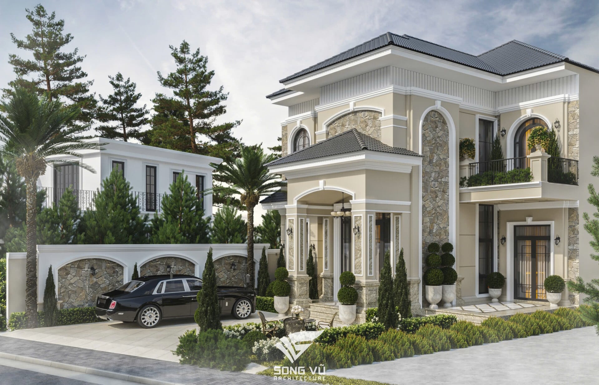 Trong xu hướng nhà ở hiện nay, phong cách bán cổ điển ngày càng được nhiều gia chủ lựa chọn bởi khả năng dung hòa giữa vẻ đẹp sang trọng, tinh tế của kiến trúc cổ điển và sự tiện nghi, gọn gàng của phong cách hiện đại. Căn nhà trong hình ảnh là một ví dụ tiêu biểu, thể hiện rõ sự đầu tư chỉn chu cả về ngoại thất kiến trúc lẫn tổ chức công năng sử dụng.