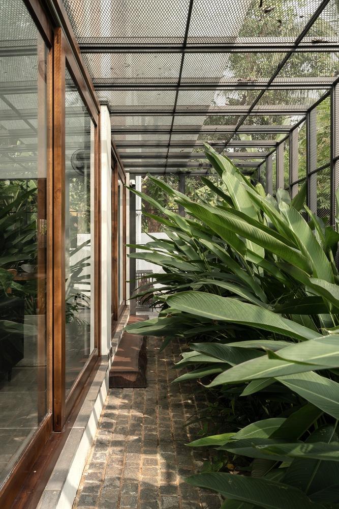Những mảng xanh nhiệt đới được lồng ghép khéo léo vào các khoảng lùi kiến trúc