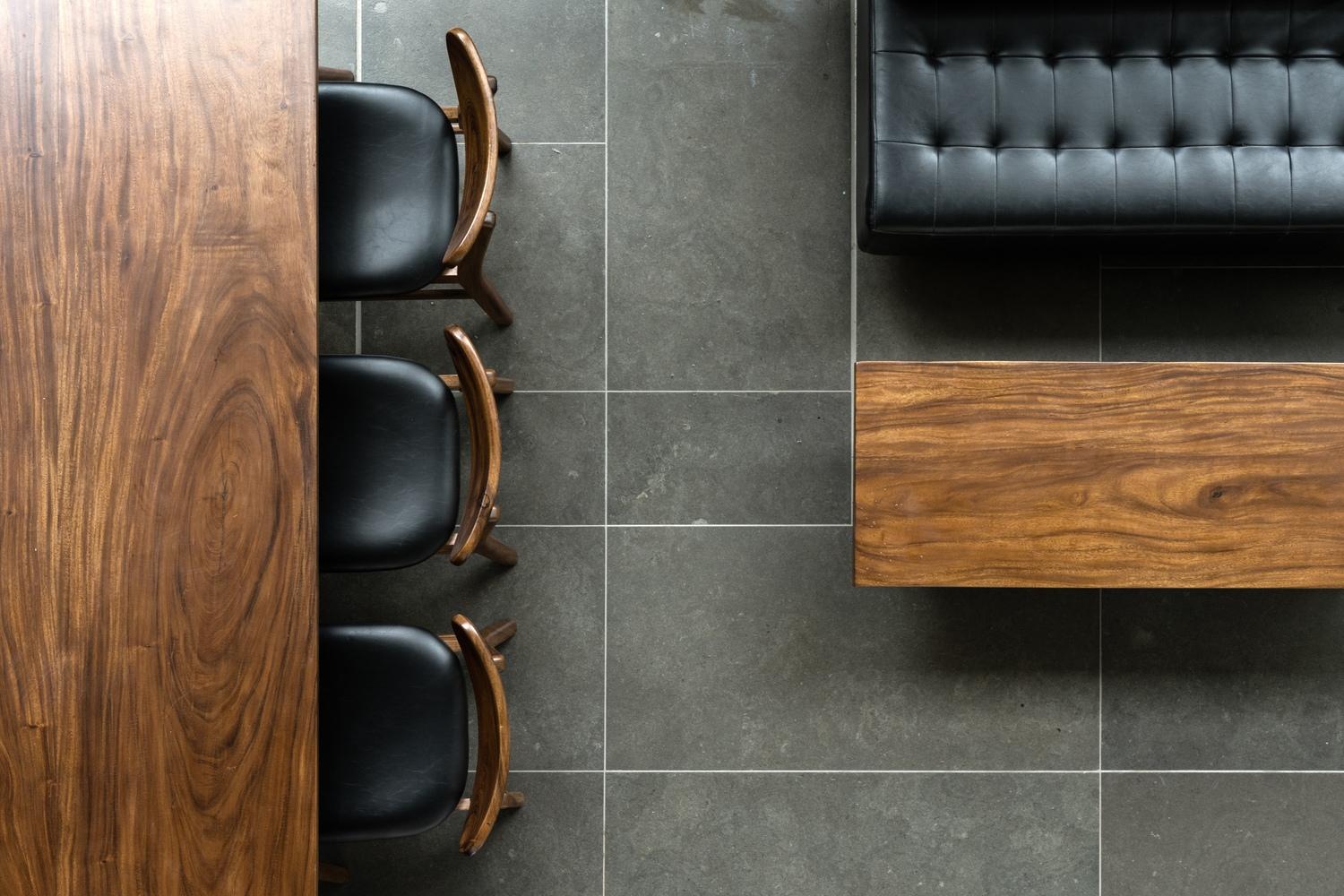 Bước vào bên trong, Infinity Edge Residence không choáng ngợp bằng sự xa hoa mà chinh phục bằng sự chân thực của từng khối vật liệu. Đó là sự hiện diện của những mảnh sàn đá vôi mát lạnh, của khối trần bê tông trần đánh bóng mang sắc thái trầm mặc, những chất liệu vốn dĩ thô ráp nhưng khi đặt cạnh nhau lồng vào trong những khối gỗ tự nhiên nguyên bản lại tạo nên một sự cân bằng tinh tế.