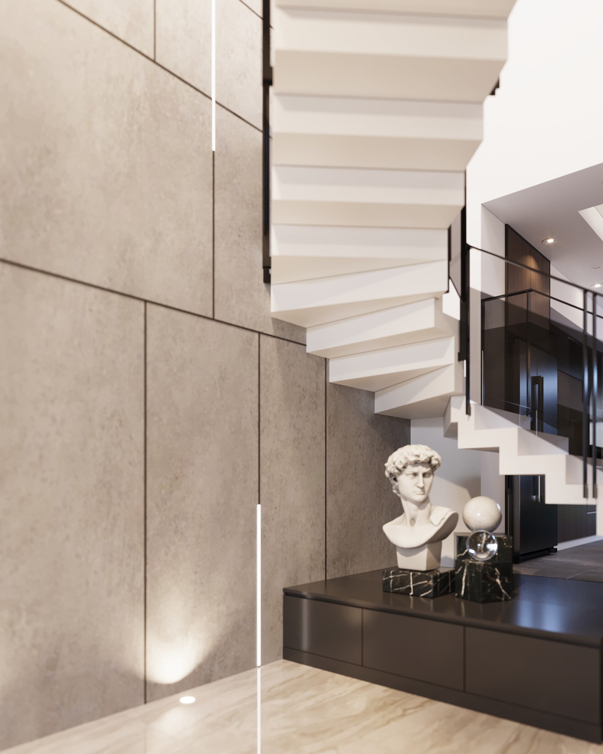 • Lầu 1 (Tầng 2): Khu vực nghỉ ngơi riêng tư hoàn toàn với phòng ngủ Master sang trọng và phòng ngủ cho con trai, tất cả đều có vệ sinh khép kín.